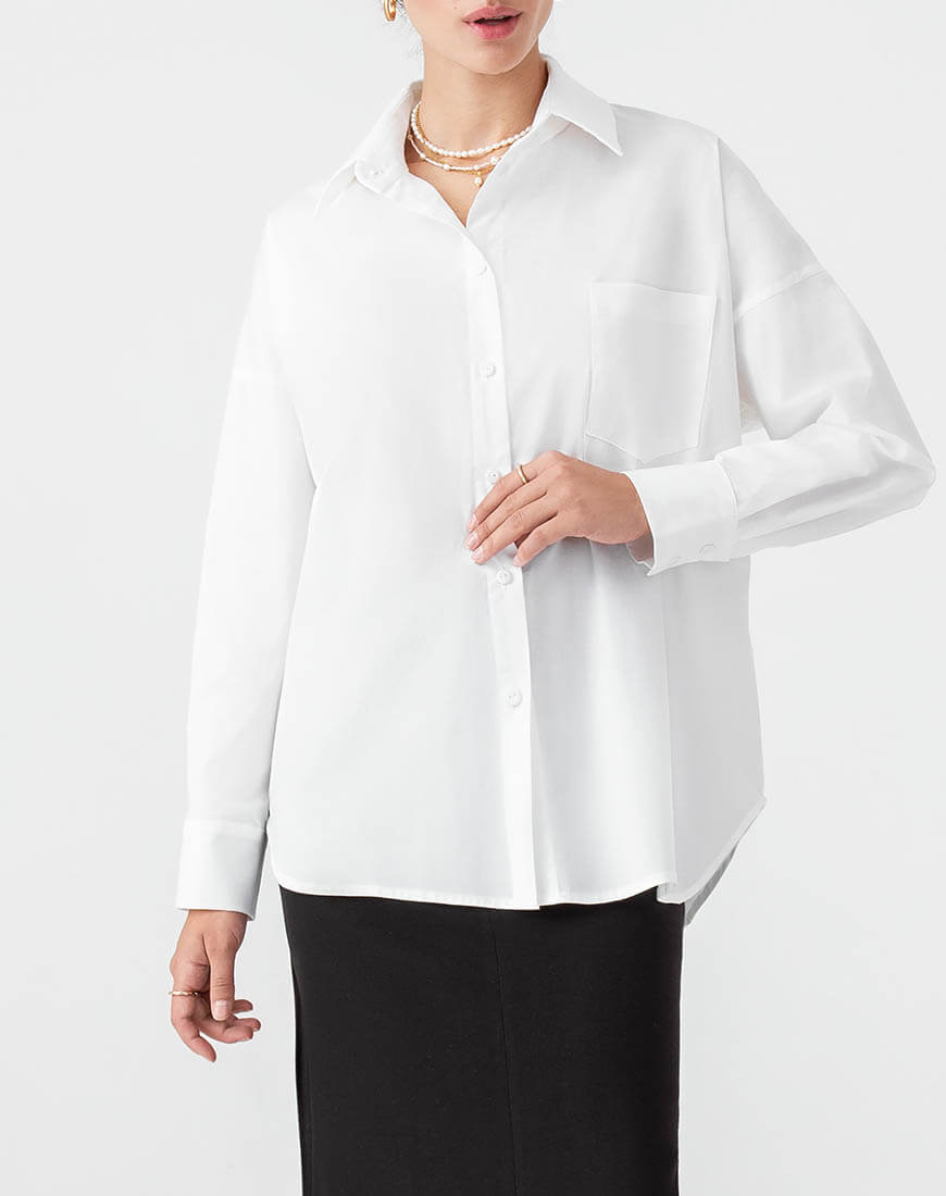 Cорочка вільного крою на гудзиках, має нагрудну кишеню