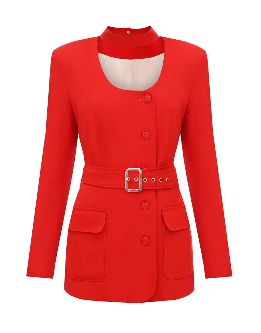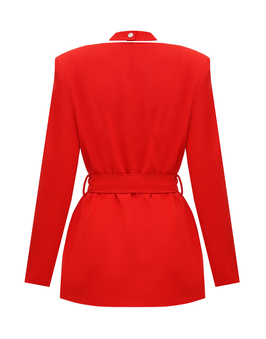 Елегантна сукня-жакет створена для тих, хто вміє тримати баланс між діловим стилем і жіночністю. Стримані лінії, чіткі деталі та ефектний пояс підкреслюють талію, створюючи образ, що притягує погляди. Незамінна річ у гардеробі сучасної жінки, яка знає ціну стилю й упевненості. Чокер додає нотку вишуканості, завершуючи образ із тонким відчуттям гармонії.