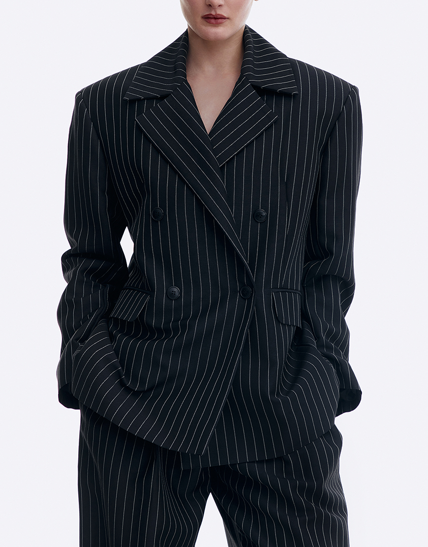 Доставка впродовж 2-5 робочих днівДвобортний жакет прямого крою у смужку
