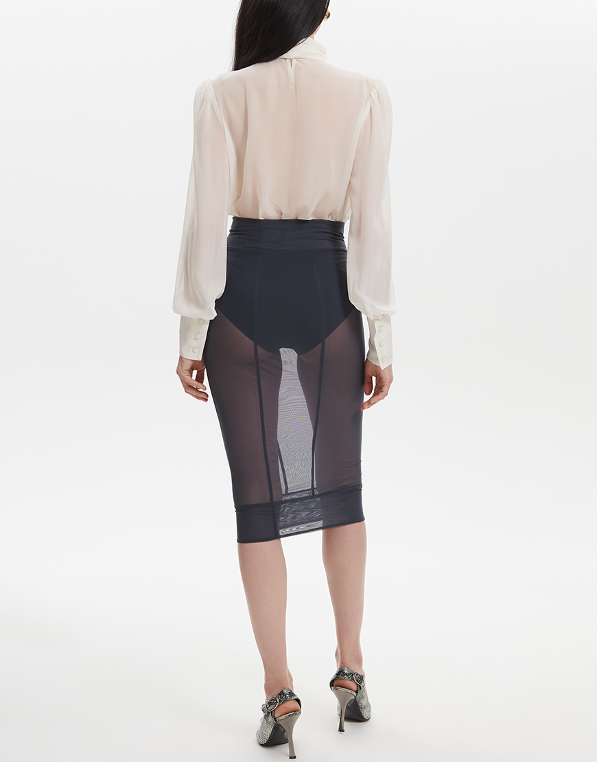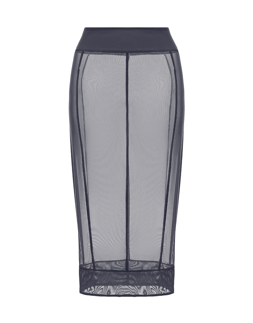 Доставка впродовж 2-5 робочих днівНапівпрозора спідниця сіро-синього кольору обтягуюча.