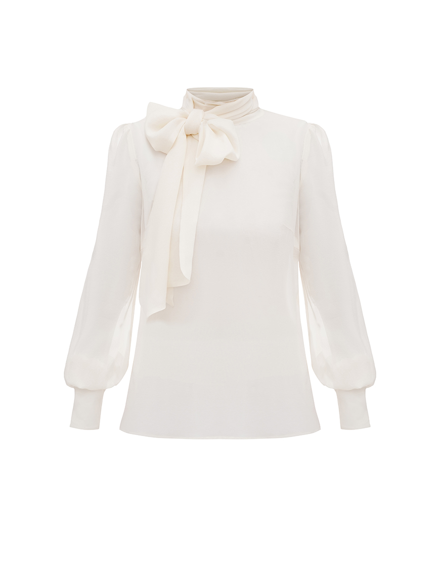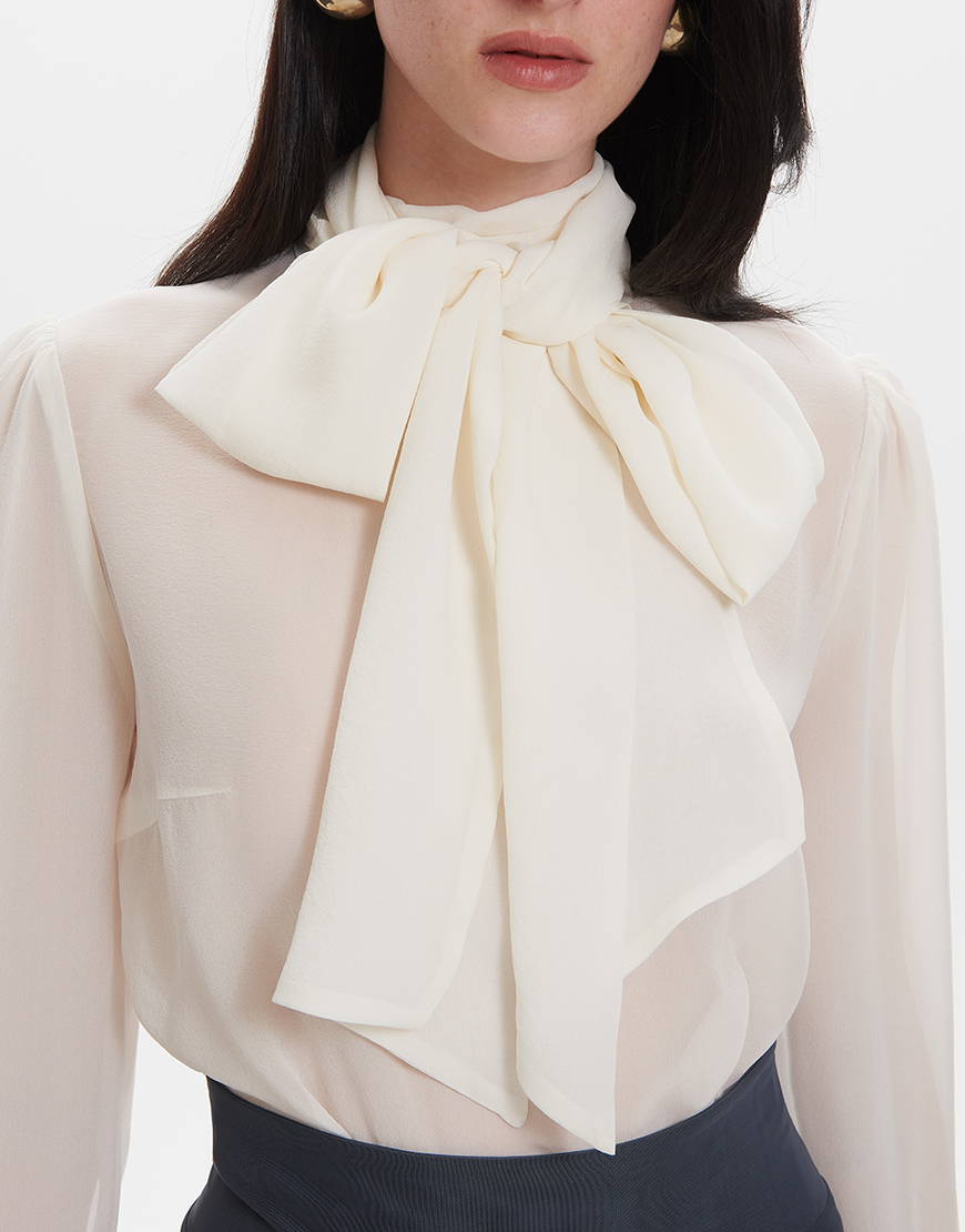 Доставка впродовж 2-5 робочих днівШовкова блуза з бантом напівпрозора.