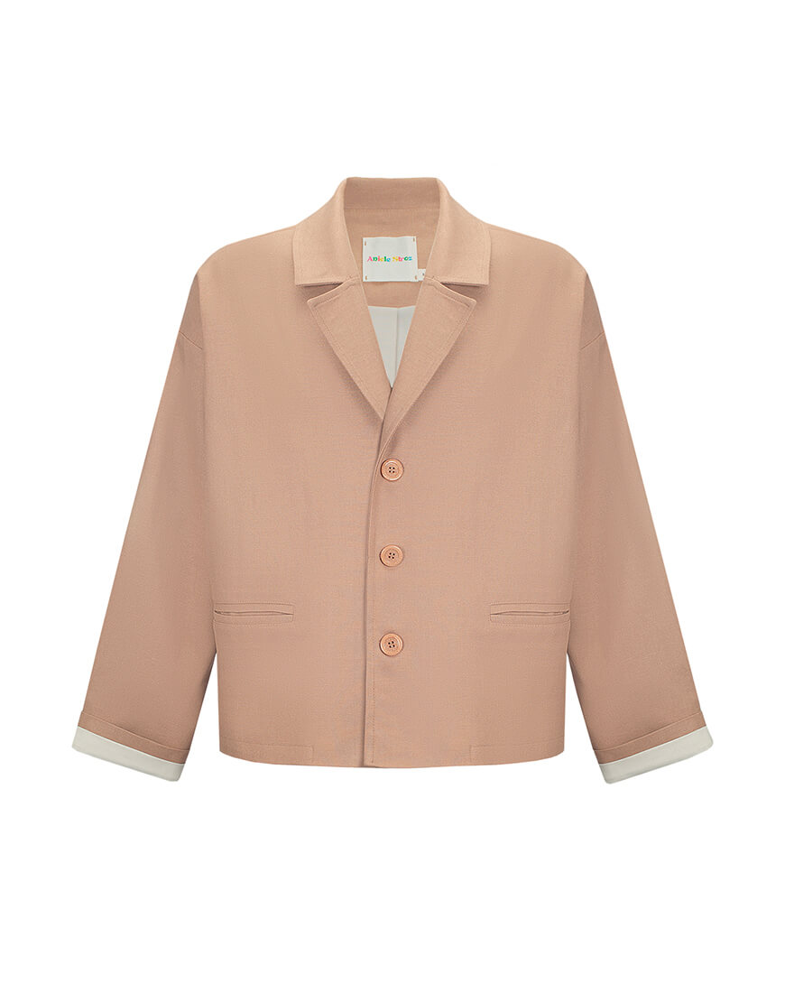 Доставка впродовж 2-5 робочих днівВкорочений лляний жакет з додаванням бавовни, з довгими рукавами та ґудзиками