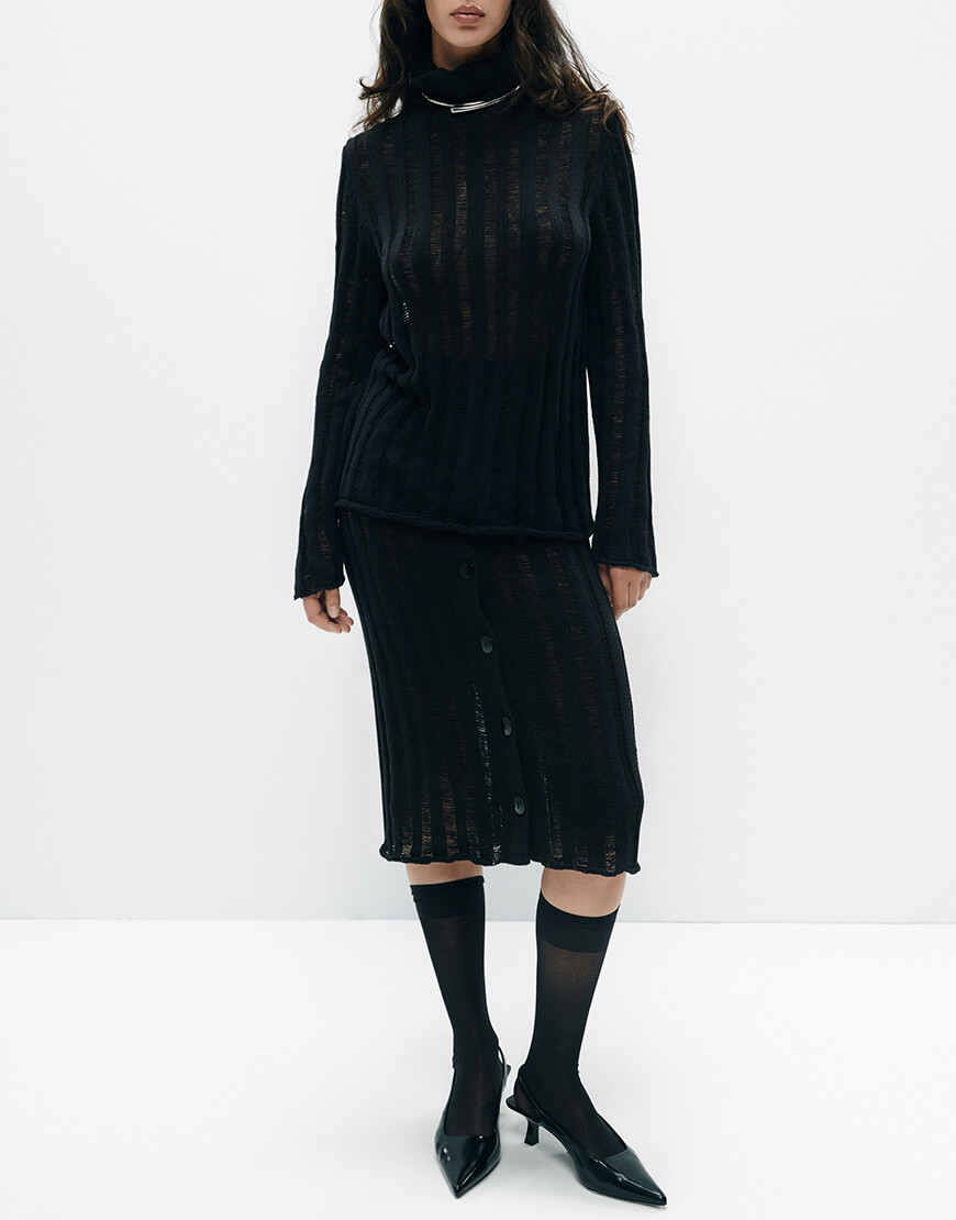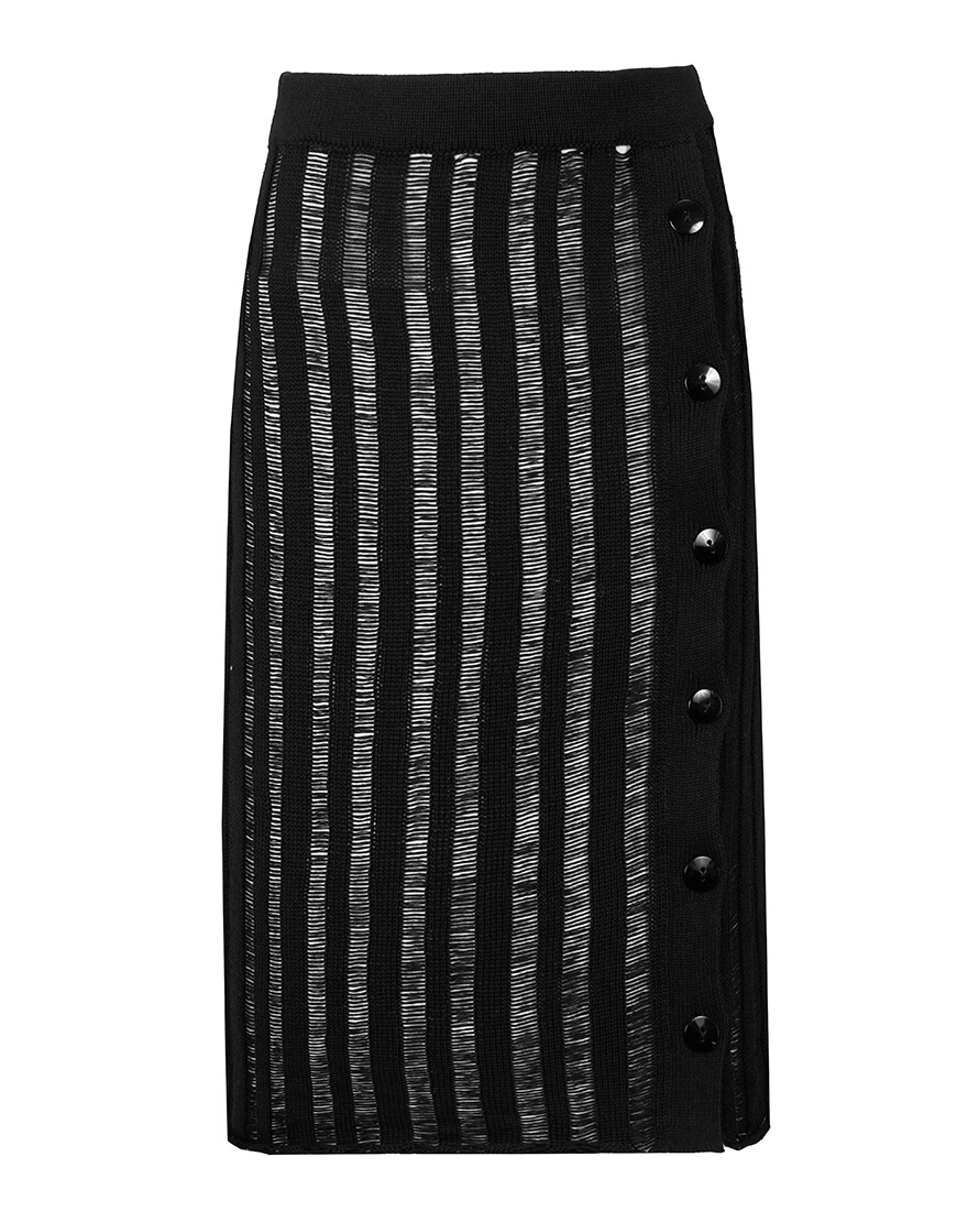 Ця в’язана бавовняна спідниця, доповнена кашеміром, поєднує м’якість з витонченою текстурою. Ряд ґудзиків спереду додає як функціональну, так і стильну деталь, надаючи спідниці універсальності.
