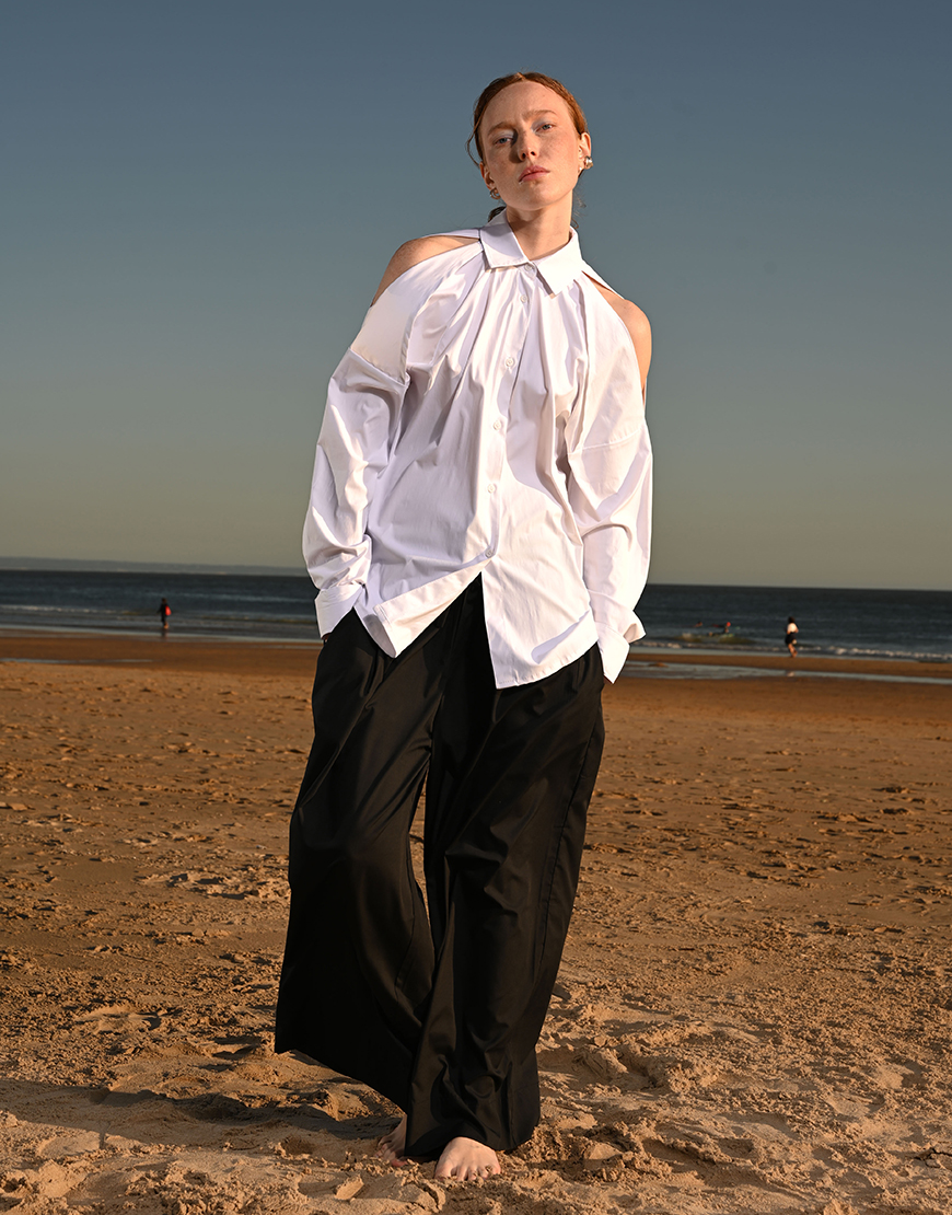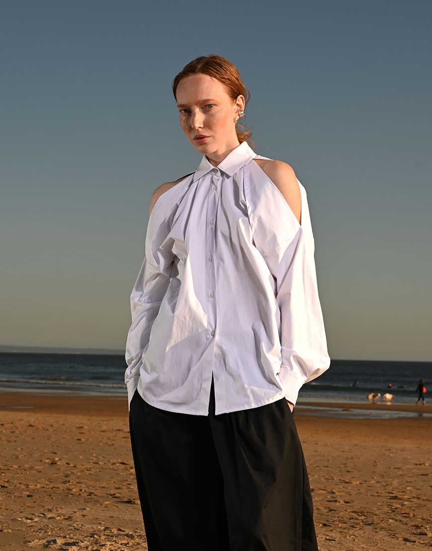 Доставка впродовж 2-5 робочих днівЗробіть сміливу заяву з цією сорочкою з відкритими плечима – ідеальне поєднання класичної елегантності та сучасного дизайну. Виготовлена з м’якої, легкої тканини, ця сорочка створює витончений силует з сучасним акцентом – відкриті плечі додають нотки витонченості та яскравості.