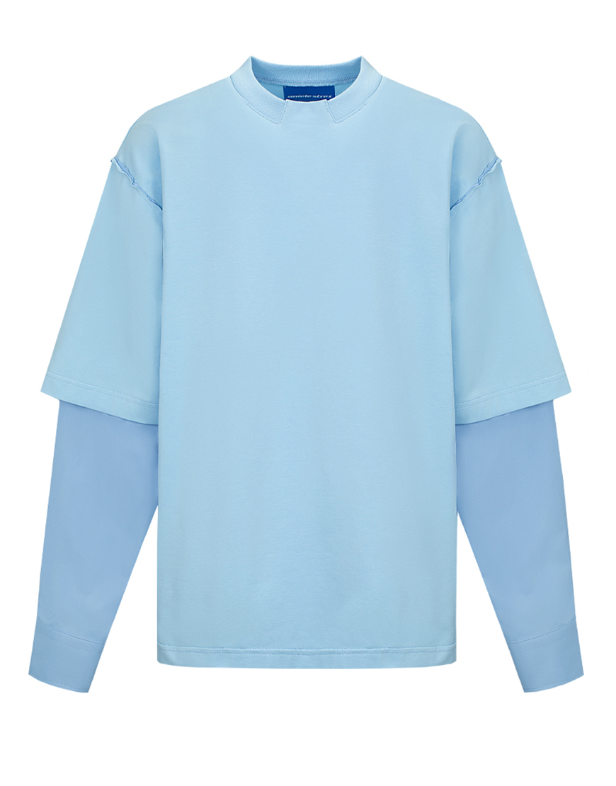 Доставка впродовж 2-5 робочих днівОновіть свій повсякденний гардероб з цим гібридним лонгслівом – унікальним поєднанням класичної футболки та сорочки на ґудзиках. Основа виконана у вигляді м’якої футболки вільного крою, а довгі рукави виготовлені з більш щільної, сорочкової тканини зі зборками – для сучасного, нестандартного акценту.