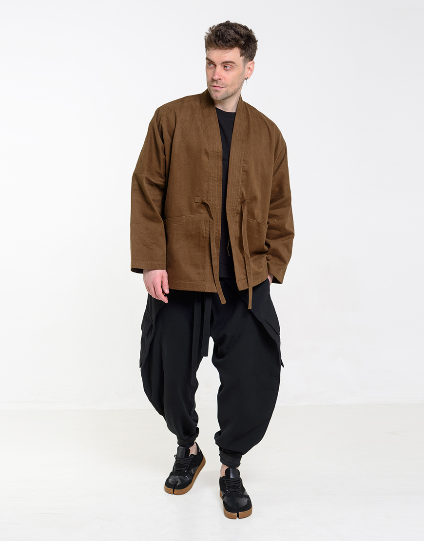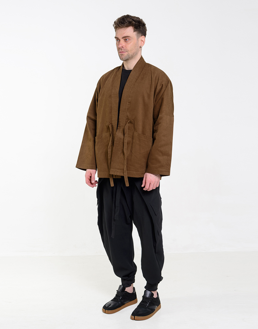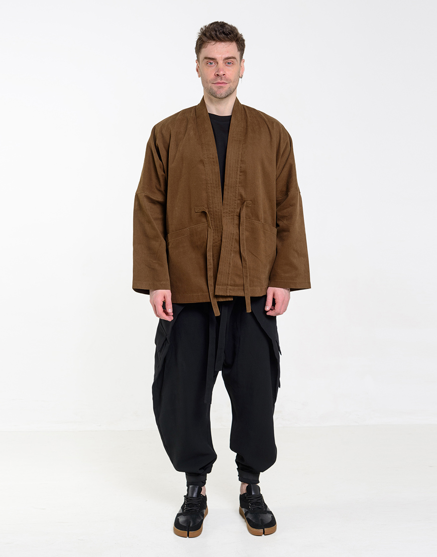 Доставка впродовж 2-5 робочих днівКімоно oversize з цупкої бавовняної тканини. Комір-стійка . Довгі рукави . Накладні кишені на стегнах. Застібається на зав!язку спереду.