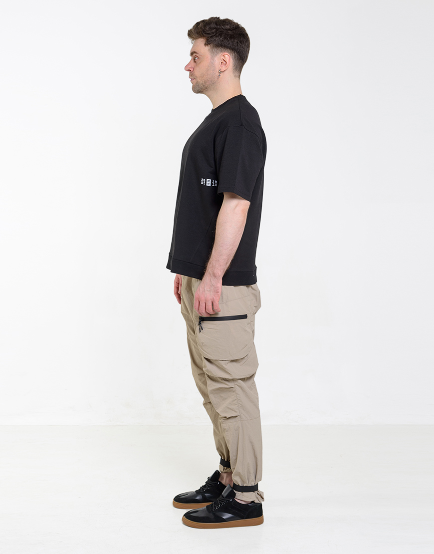 Доставка впродовж 2-5 робочих днівШтани карго вільного крою з нейлонової тканини. Кишені спереду та накладні кишені з клапанами на штанинах. Ефект жатки. Застібаються на кнопки та ремінь з фастексом спереду