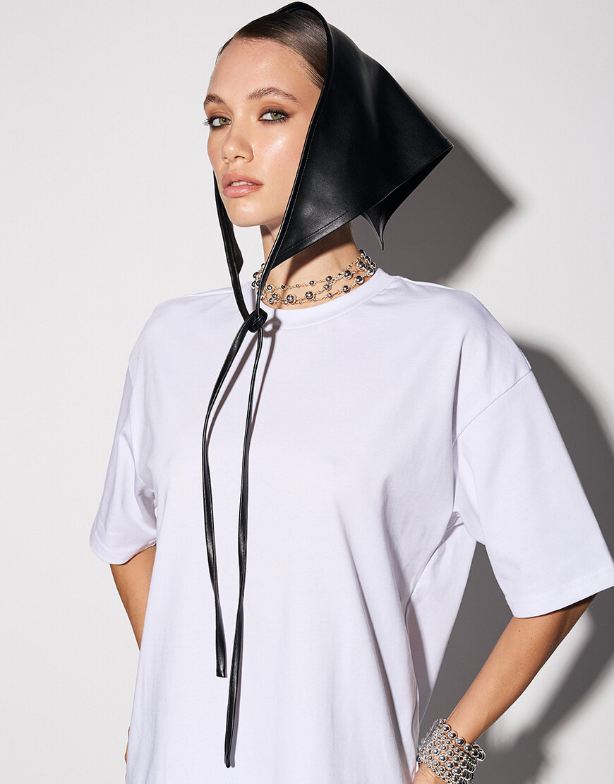 Код товару: 408034Чорна хустина з еко шкіри Leather Triangle