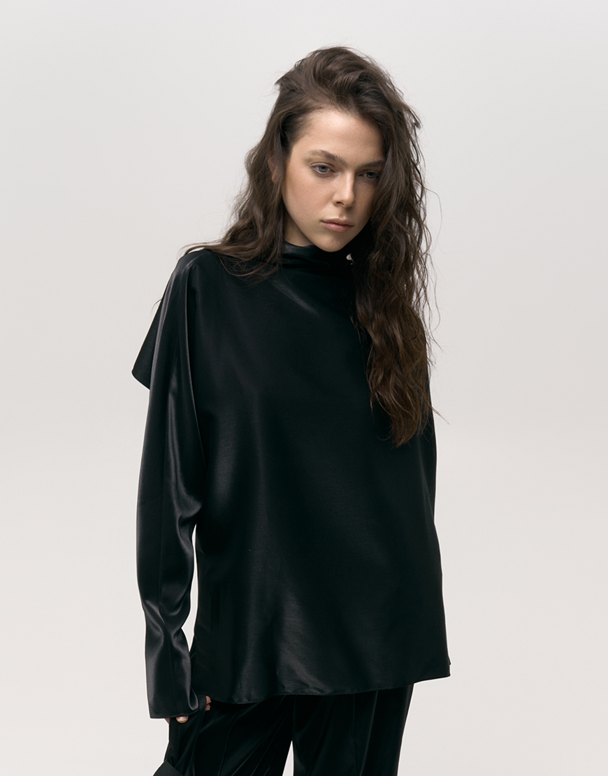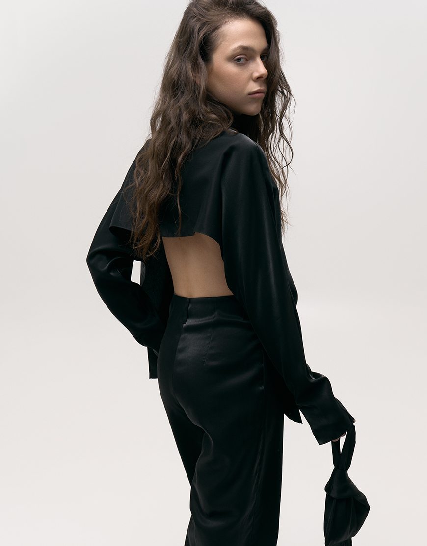 Доставка впродовж 5-12 робочих днівБлуза з відкритою спиною виконана з атласу з рідким ефектом. Скульптурний крій підкреслює лінії тіла, а глибокий виріз на спині додає несподіваної інтриги. Ідеальна для вечірніх виходів, ділових образів або як стильний акцент у повсякденному образі.