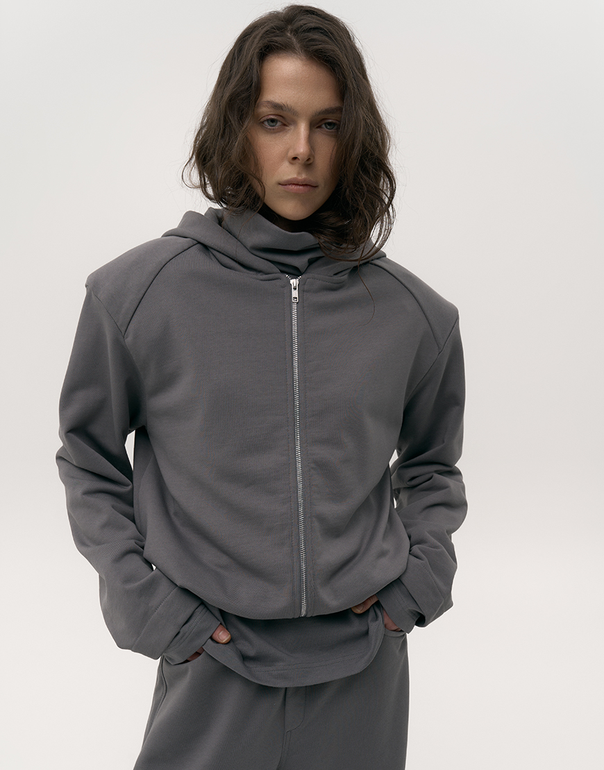 Укорочене худі зі знімними підплічниками сірий