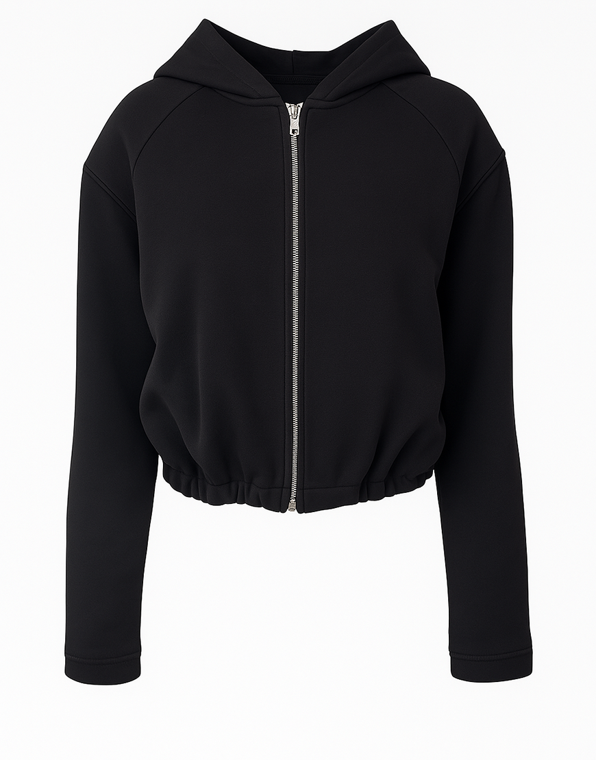 Доставка впродовж 5-12 робочих днівЛаконічне худі з капюшоном та блискавкою, виконане в зручному укороченому крої та знімними підплічниками. Завдяки еластичному поясу створює акцент на талії, підвищуючи комфорт і стиль. Ідеально для повсюдного образу чи активного відпочинку