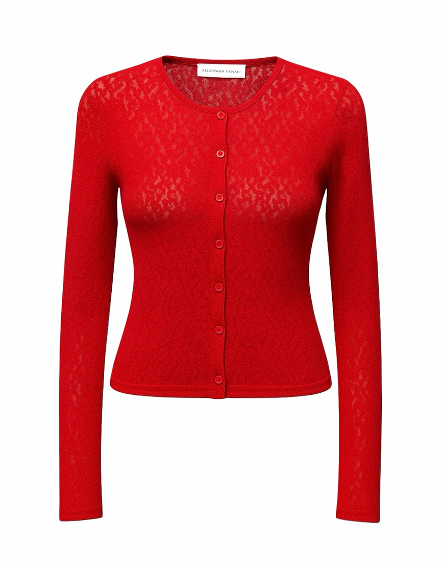 Доставка впродовж 5-12 робочих днівТоп-кардиган із червоного напівпрозорого мережива, це про матеріал і колір, які говорять першими. Про характер, пристрасть і сміливість бути помітною. Це річ, що створює настрій будь-якого образу, додаючи йому глибини та особливої енергії. Легкий, але виразний, він огортає тіло делікатно й відверто водночас. Ідеальний для тих моментів, коли хочеться не просто одягнутися, а відчути себе по особливому.