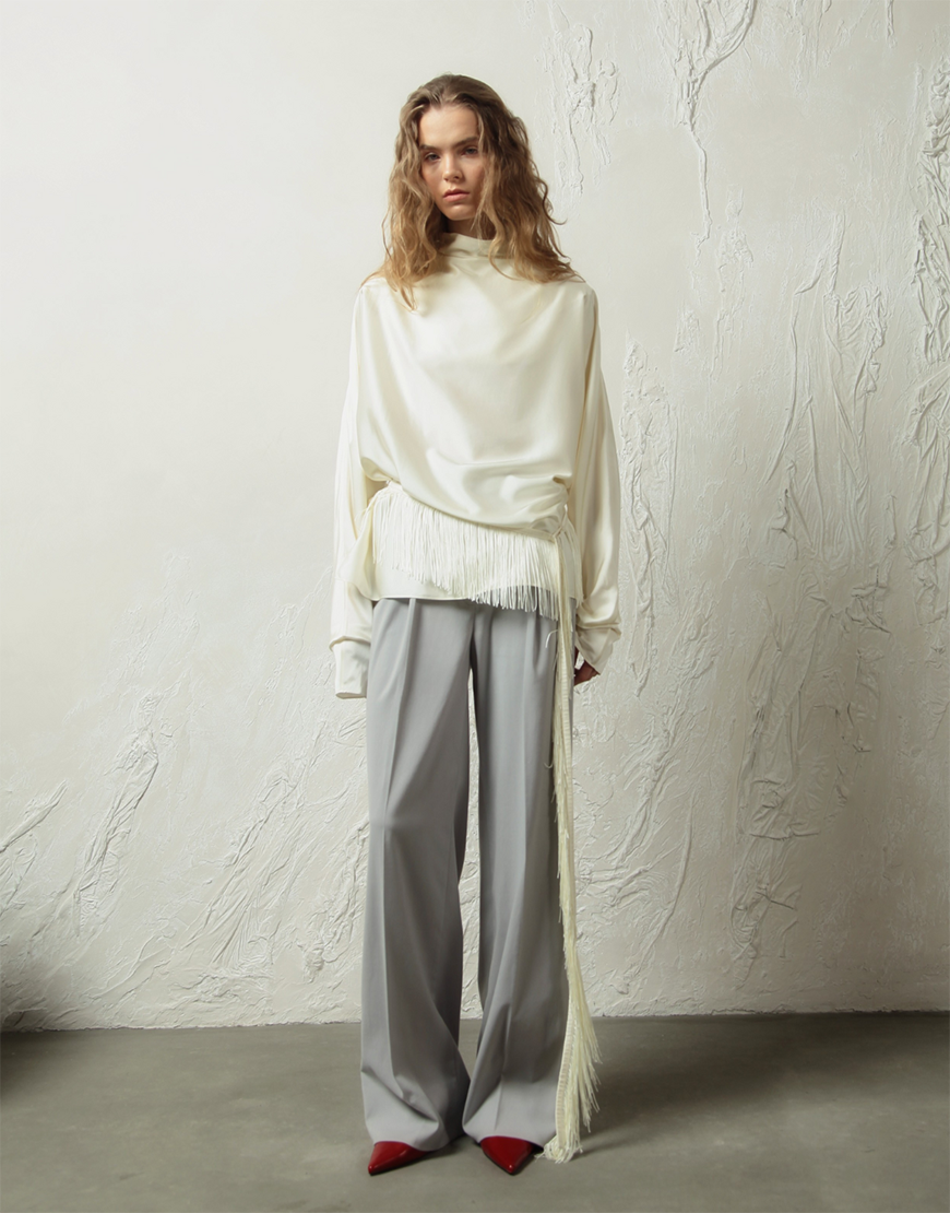 Ефектний пояс, прикрашений пишною бахромою, що створює динамічний рух під час ходи. Ідеальний акцент для суконь, піджаків чи топів — додає образу драматичності та індивідуальності.