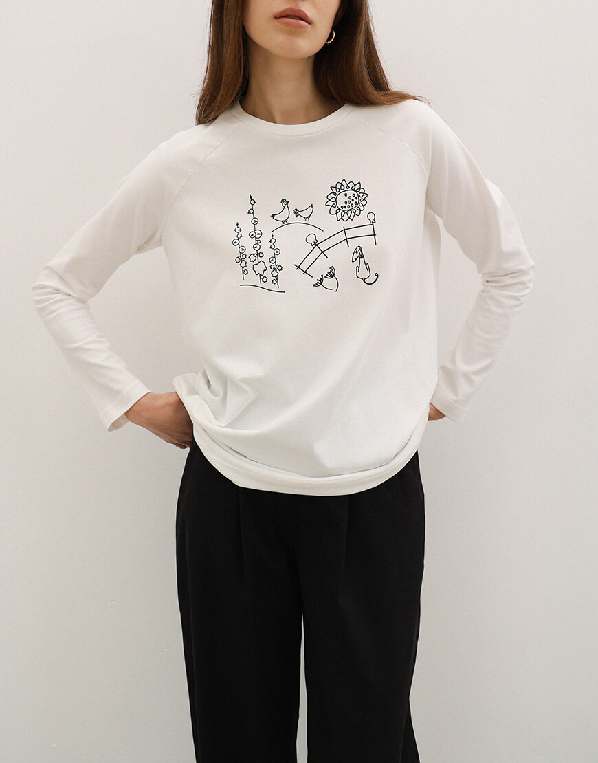 Бавовняний лонгслів з принтом “Подвір’я”, з рукавом реглан.