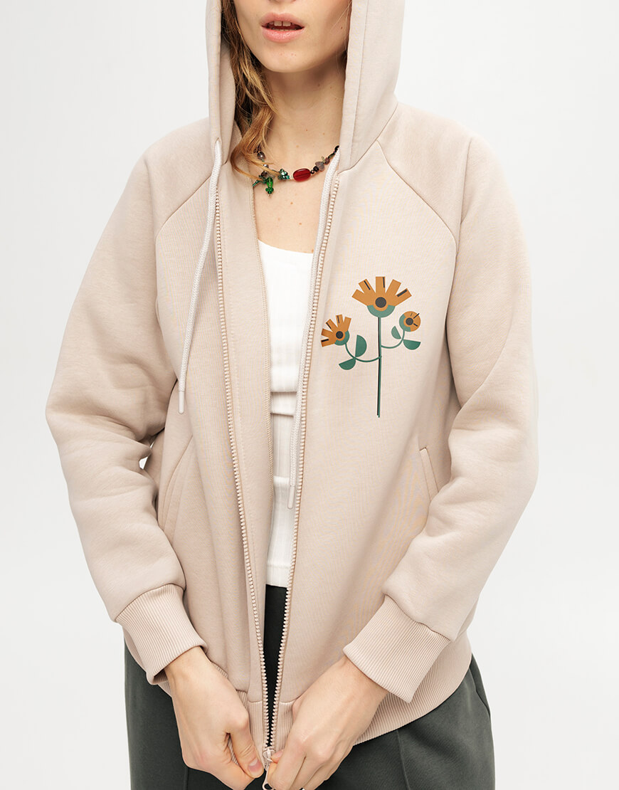 Доставка впродовж 2-5 робочих днівТеплий худі на блискавці з чорнобривцями