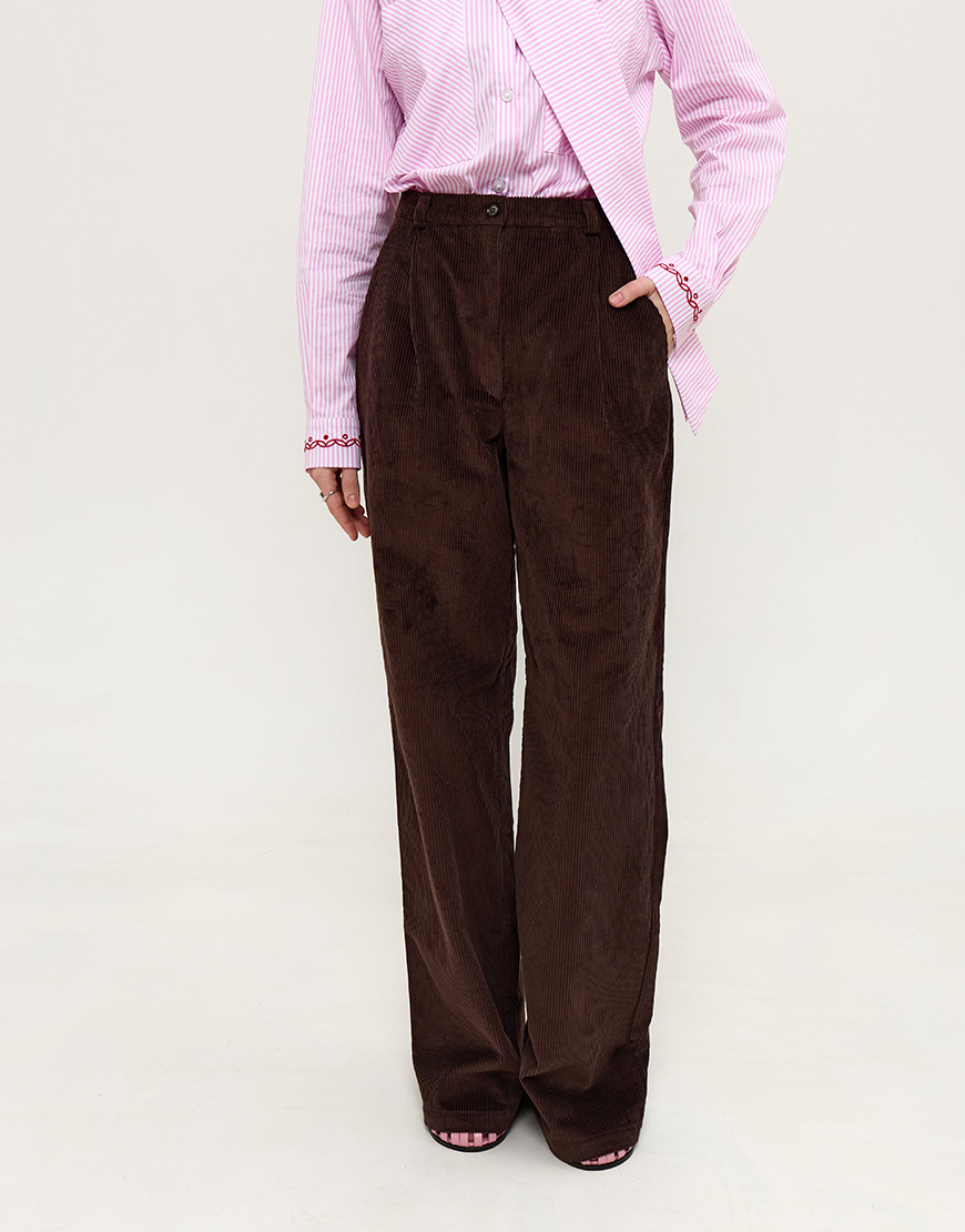 Доставка впродовж 2-5 робочих днівВельветові брюки максі, коричневого кольору
