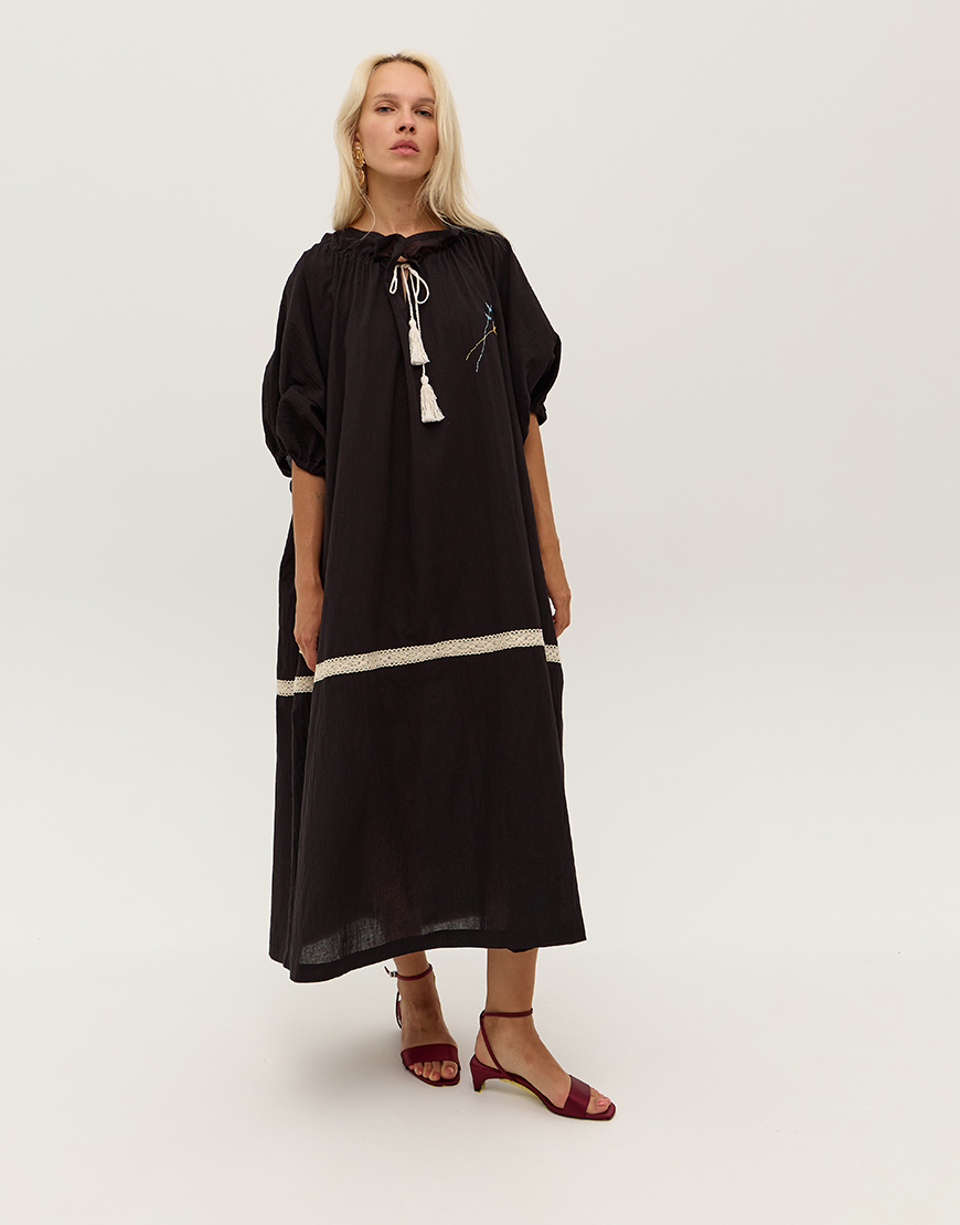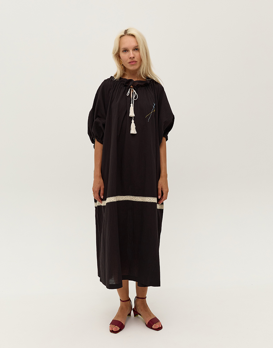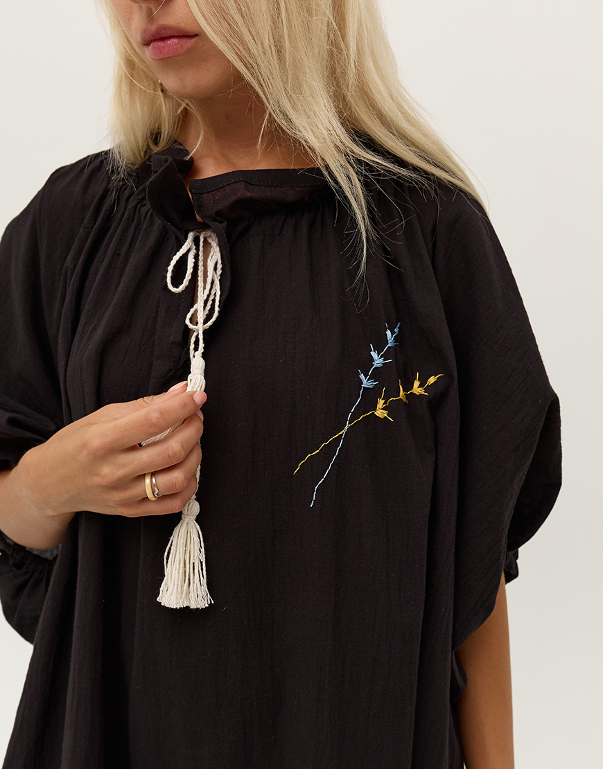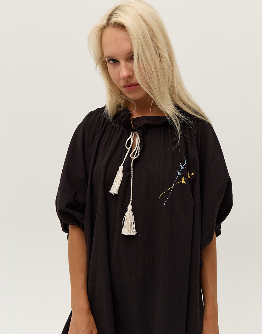 Доставка в течение 2-5 рабочих днейЧорна сукня оверсайз з об’ємними рукавами та вишивкою