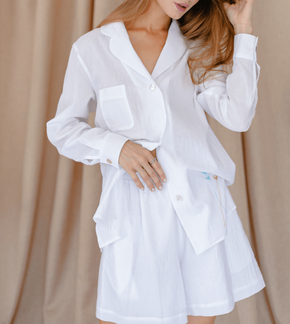 Білі вільні шорти з підкладкою, гаманец у бокових швах
