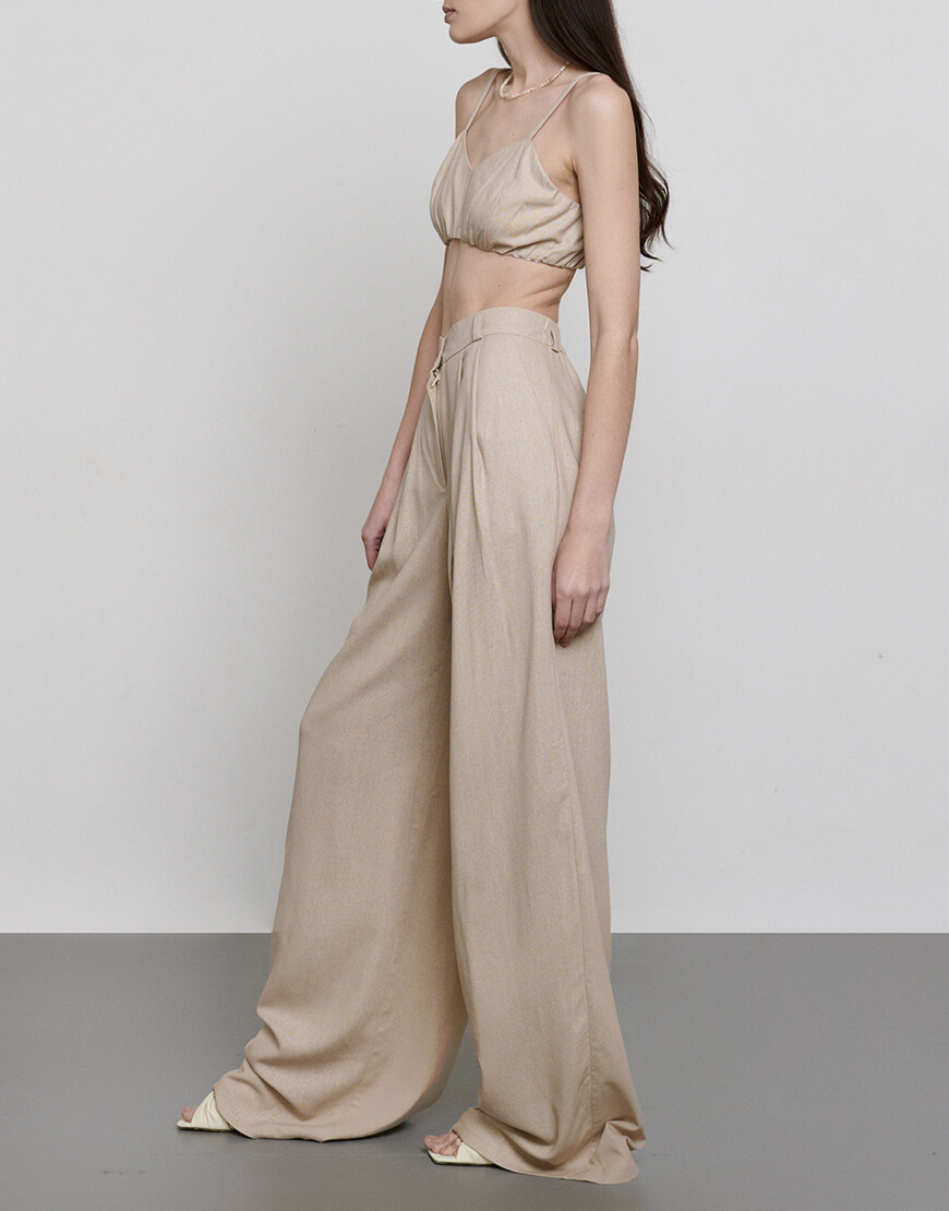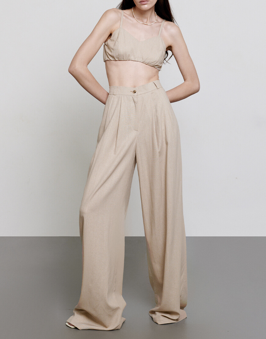 Брюки на поясі, з двома складами, максі довжини, з косими карманами