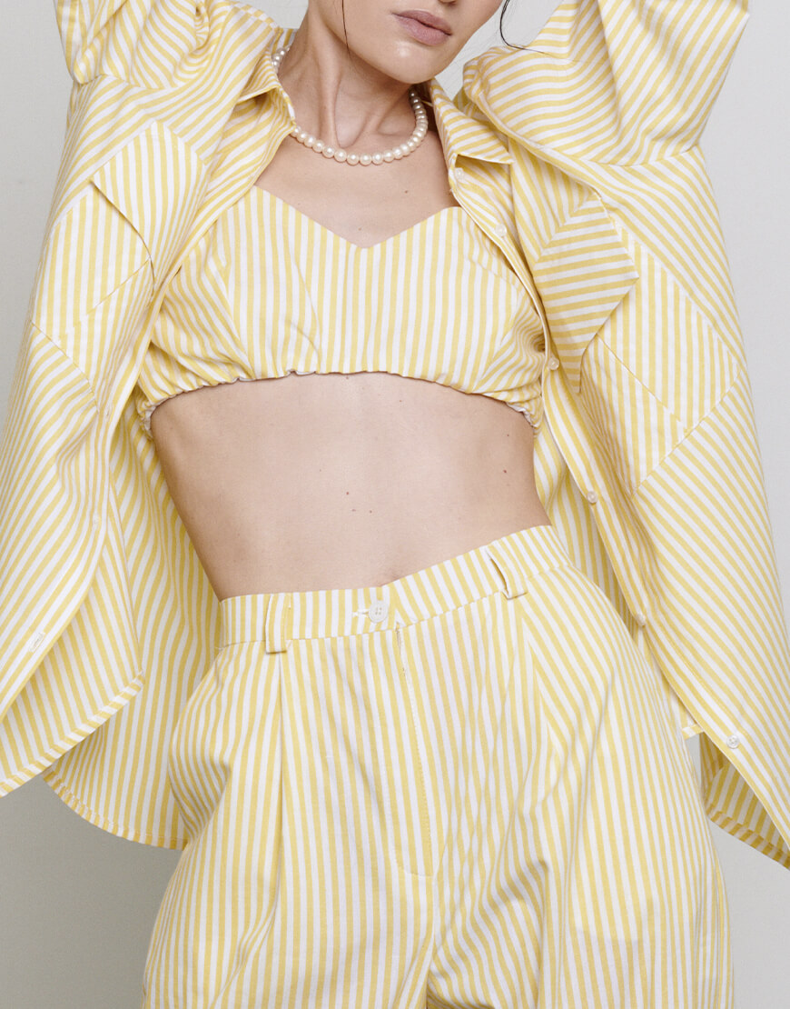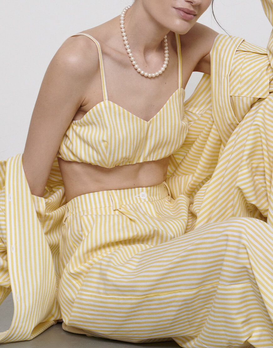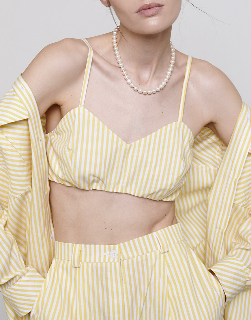 Топ короткий на тонких бретелях, на гудзиках по спинці