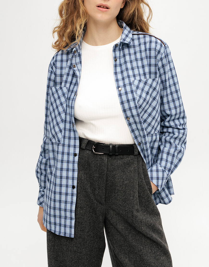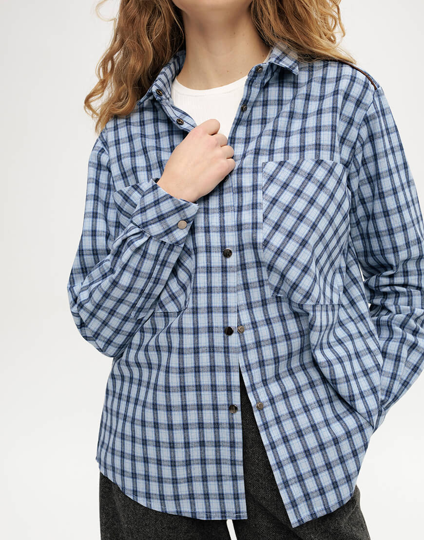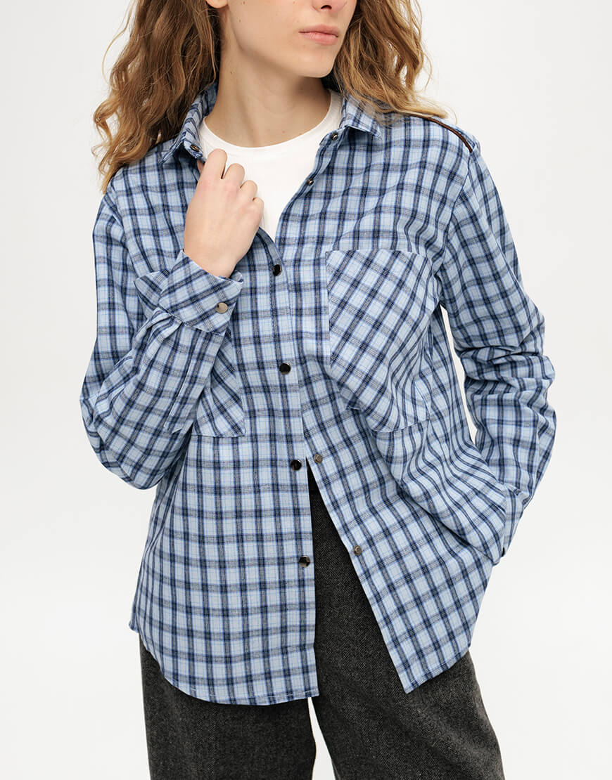 Картата, бавовняна сорочка блакитного кольору