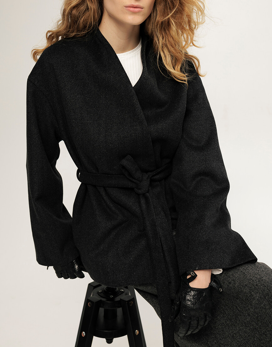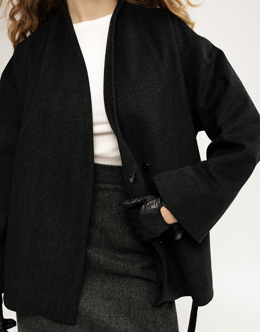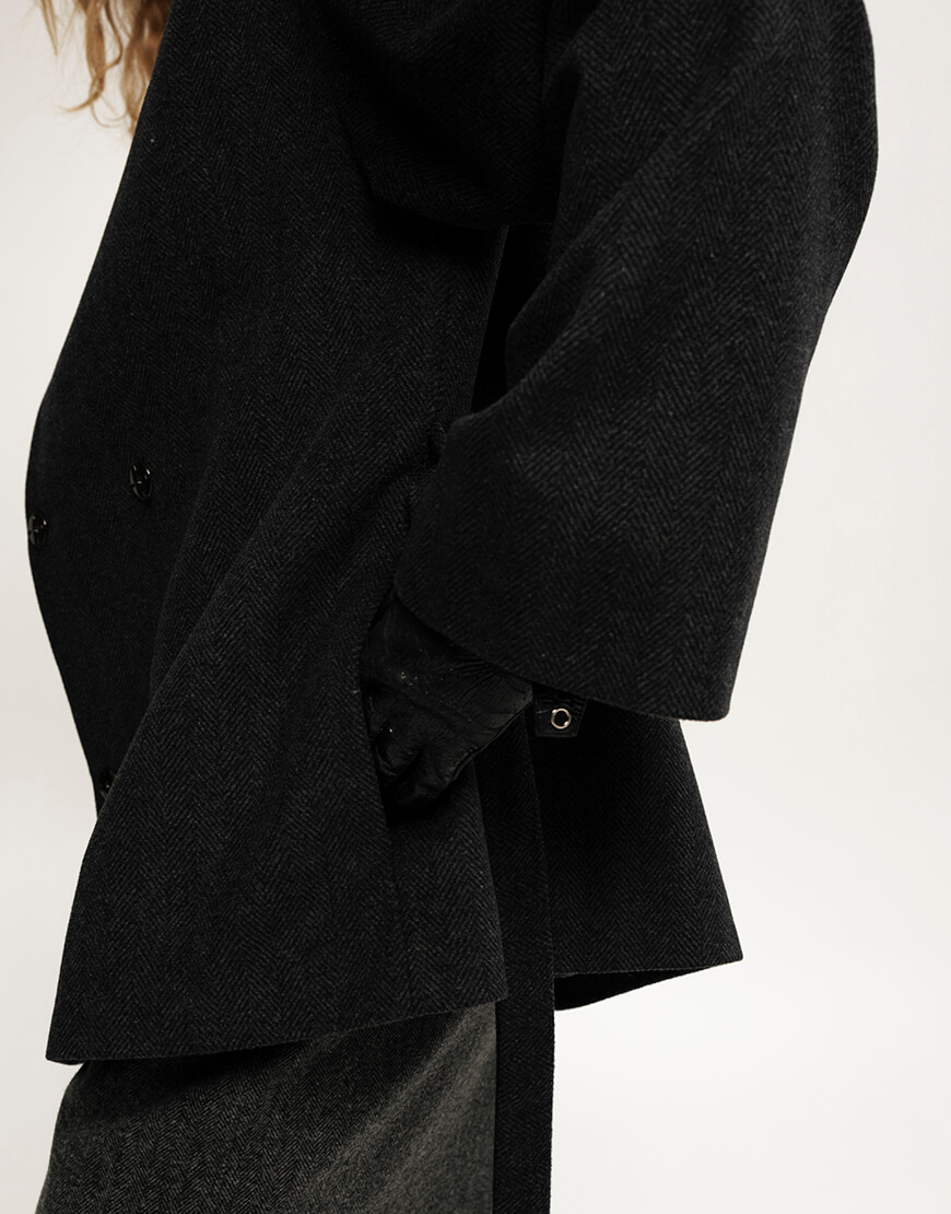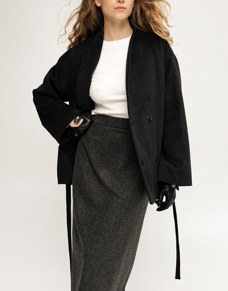 Вовняне пальто, кольору графіт, довжина- до середини стегон