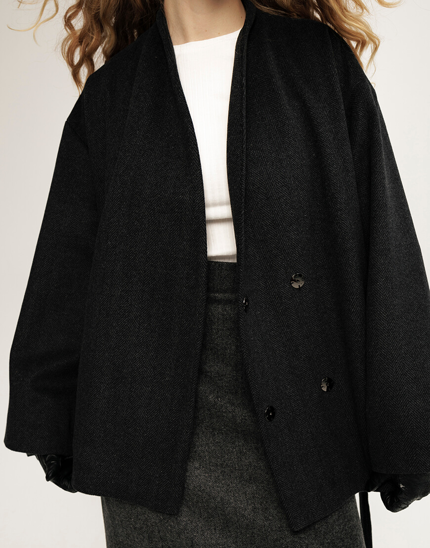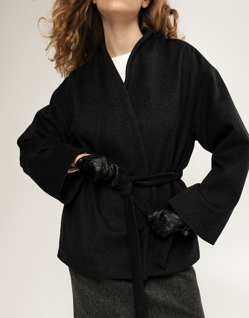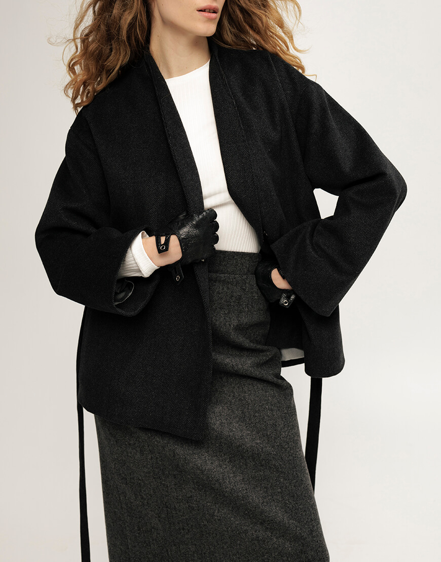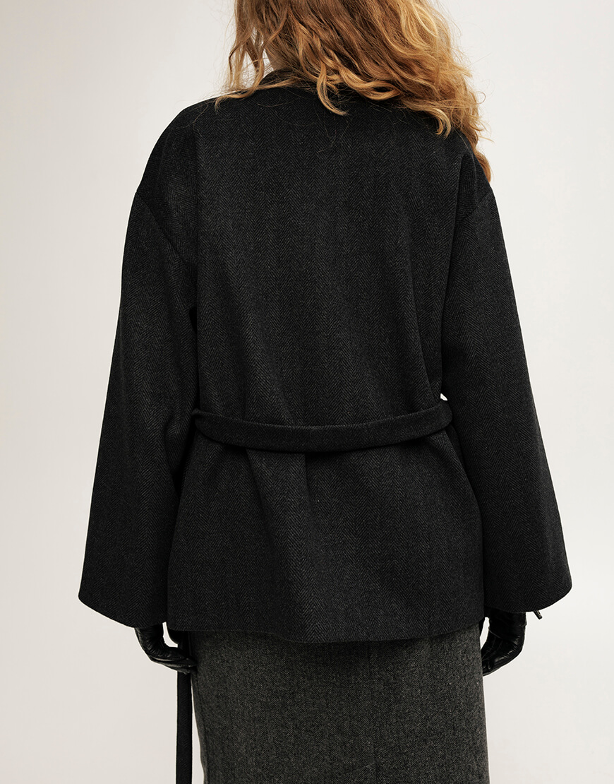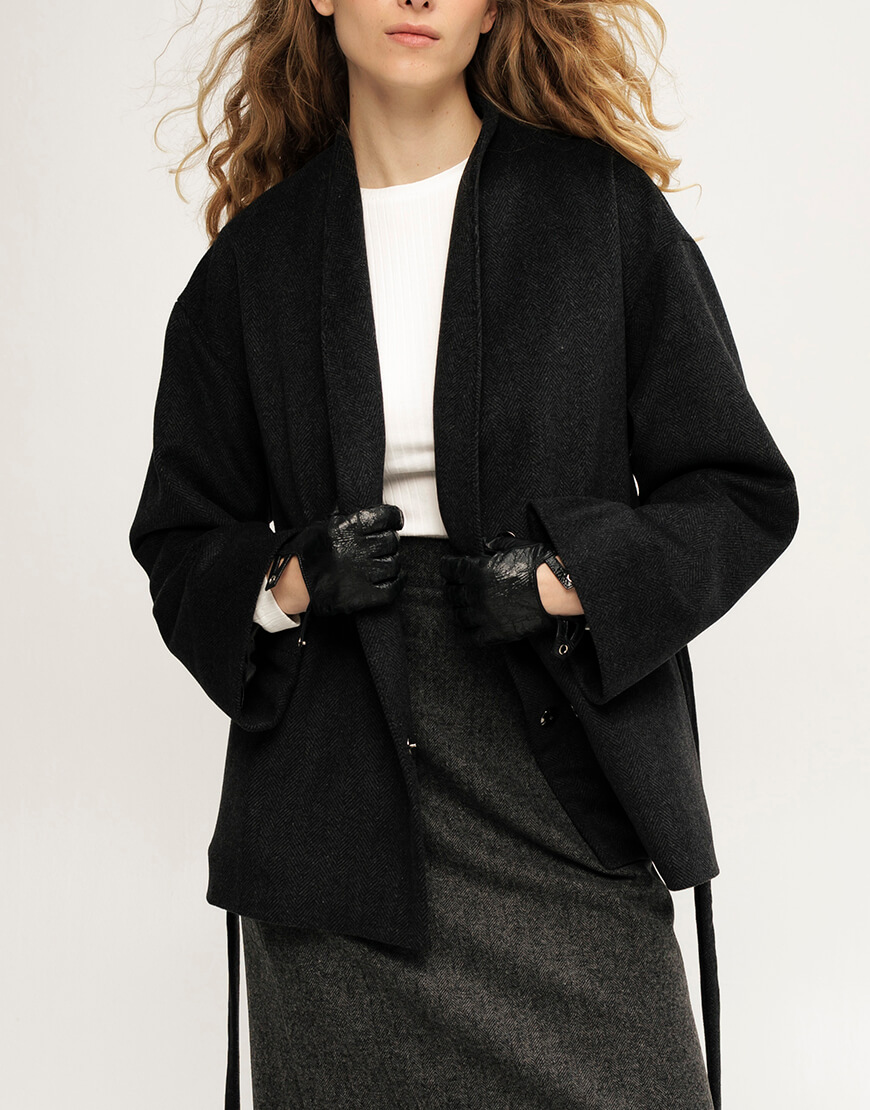 Вовняне пальто, кольору графіт, довжина- до середини стегон