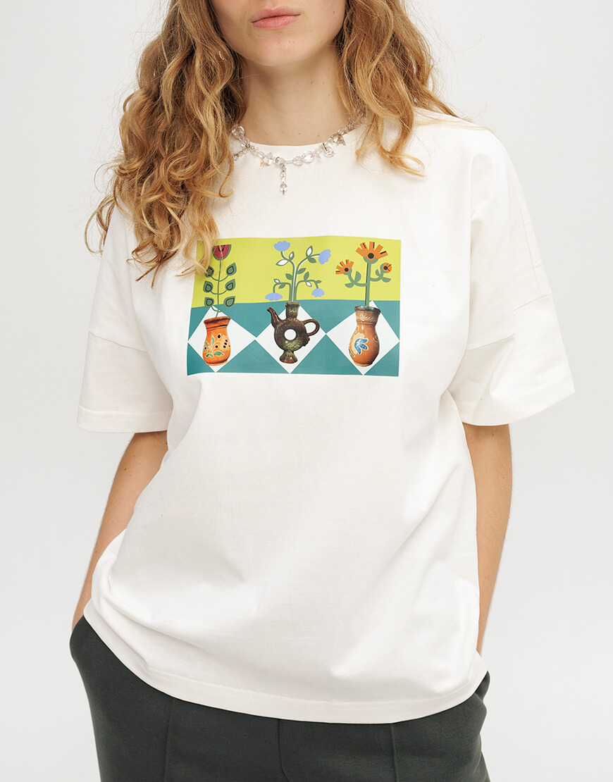 Доставка впродовж 2-5 робочих днівФутболка білого кольору з принтом колаж