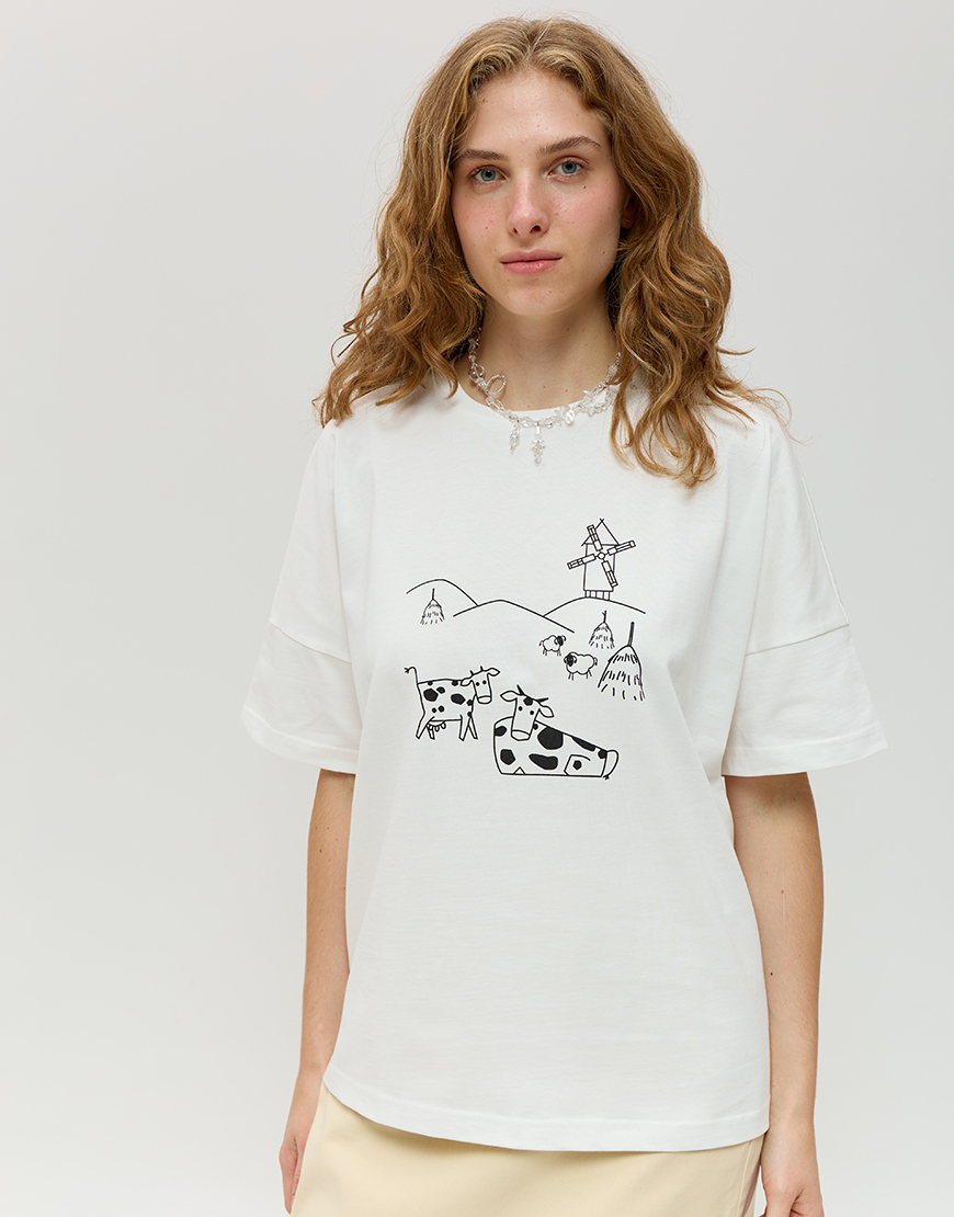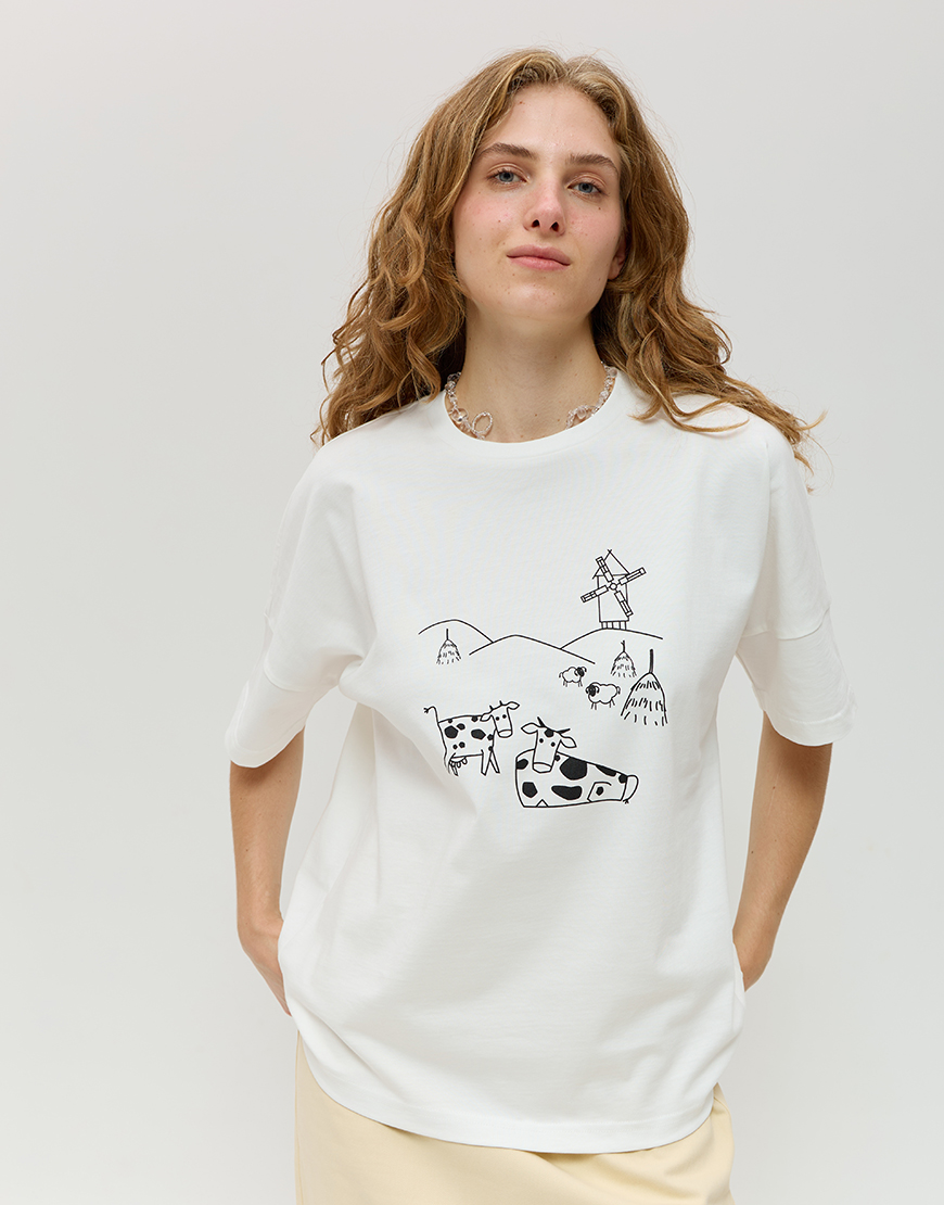 Доставка впродовж 2-5 робочих днівБавовняна футболка з принтом Карпатський двір