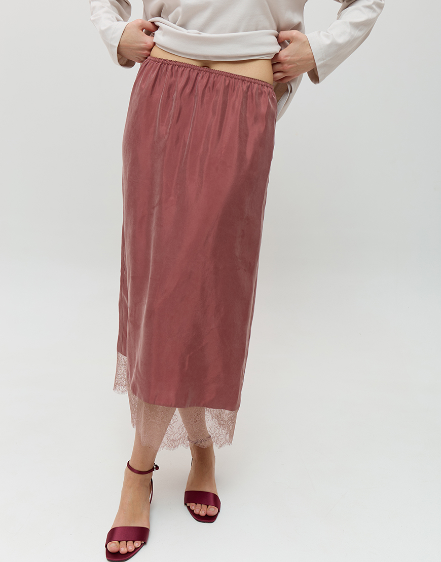 Доставка впродовж 2-5 робочих днівШовкова спідниця з мереживом, прямого силуета