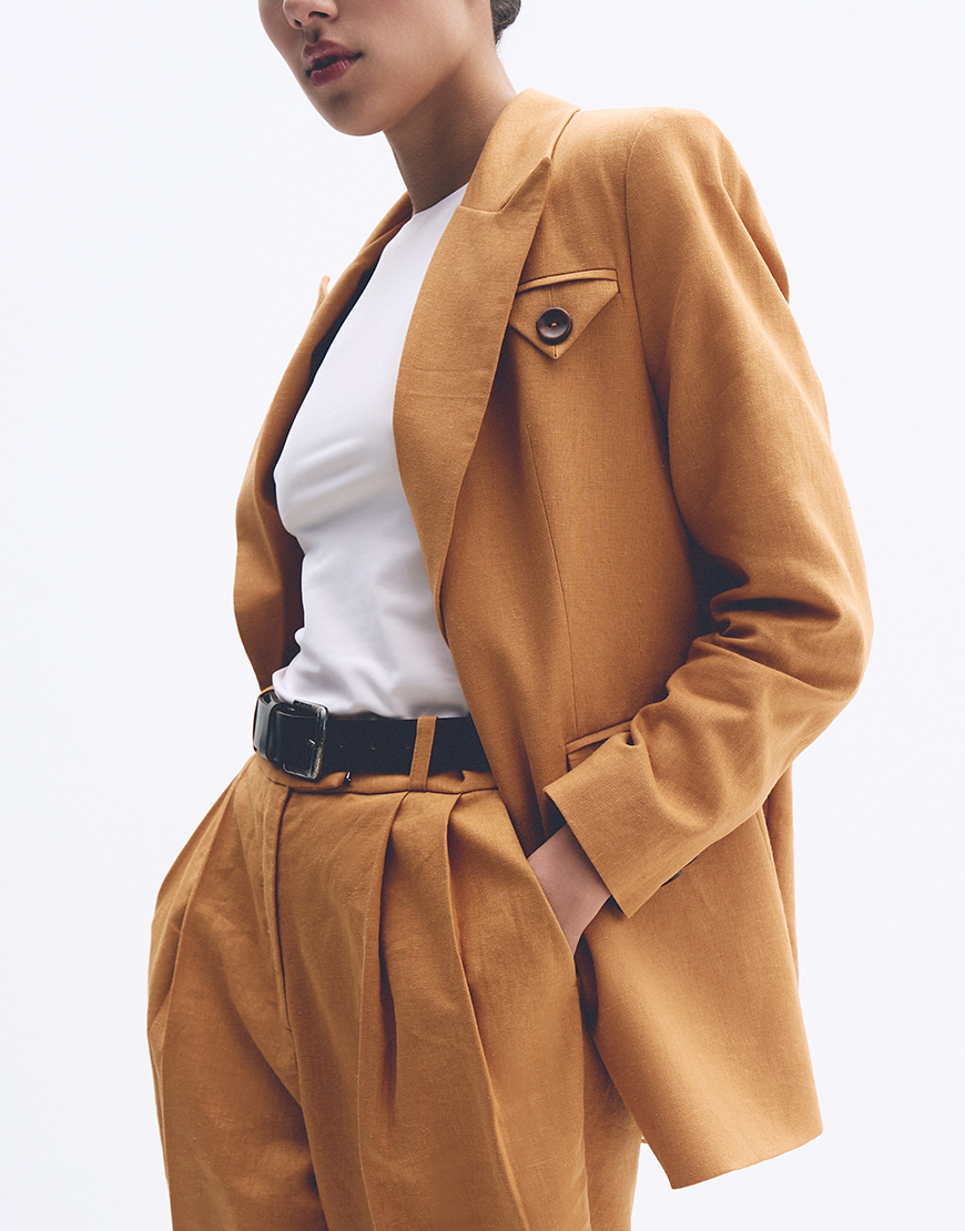 Лляний однобортний піджак з підкладкою та гудзиками на рукавах