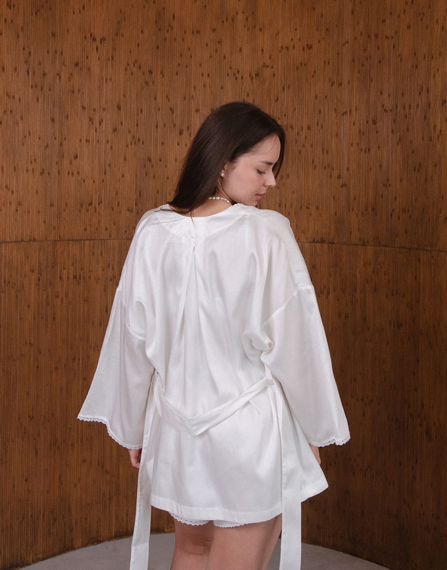 Домашній костюм з тенселю шорти і короткий кардиган молочний