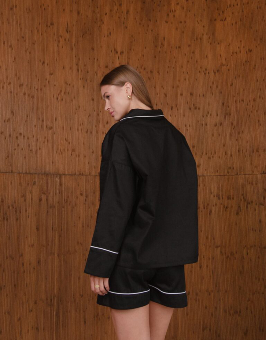 Сатинова піжама чорного кольору з білим кантом
