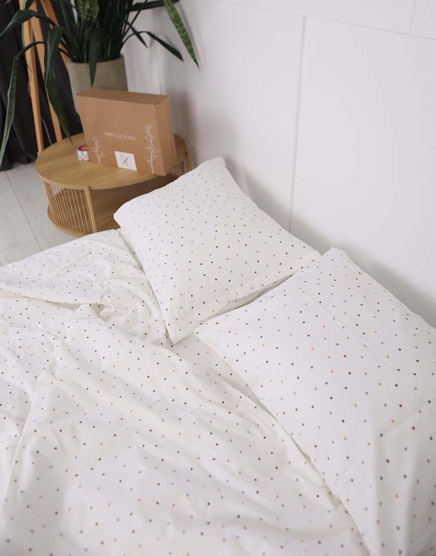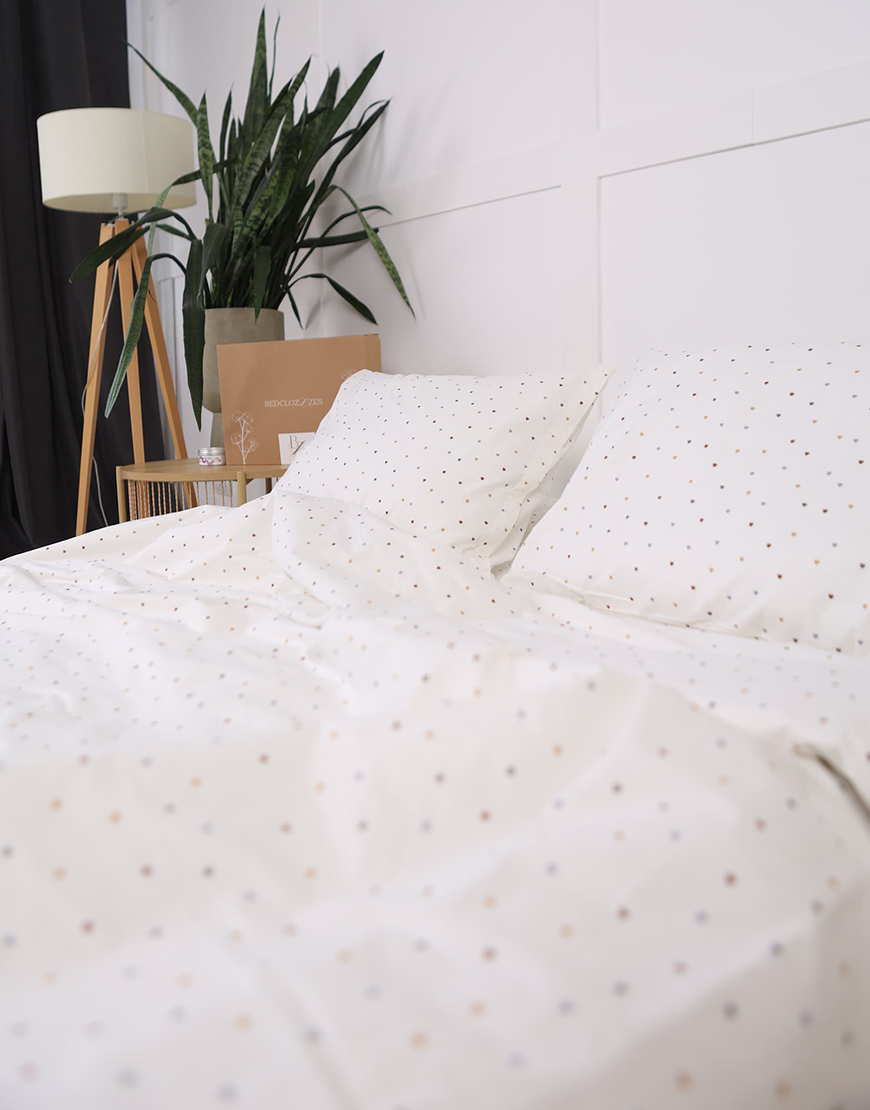 Комплект постільної білизни з ранфорсу, у комплект входить: простирадло, підковдра та дві наволочки. Ранфорс-турецька преміальна тканина, у складі лише 100% бавовна. Тканина дихаюча , має чудову терморегуляцію, не парить, не утворює ковтунців, має високу щільність та витримує більше 300 циклів прання без втрати якості та кольору.
