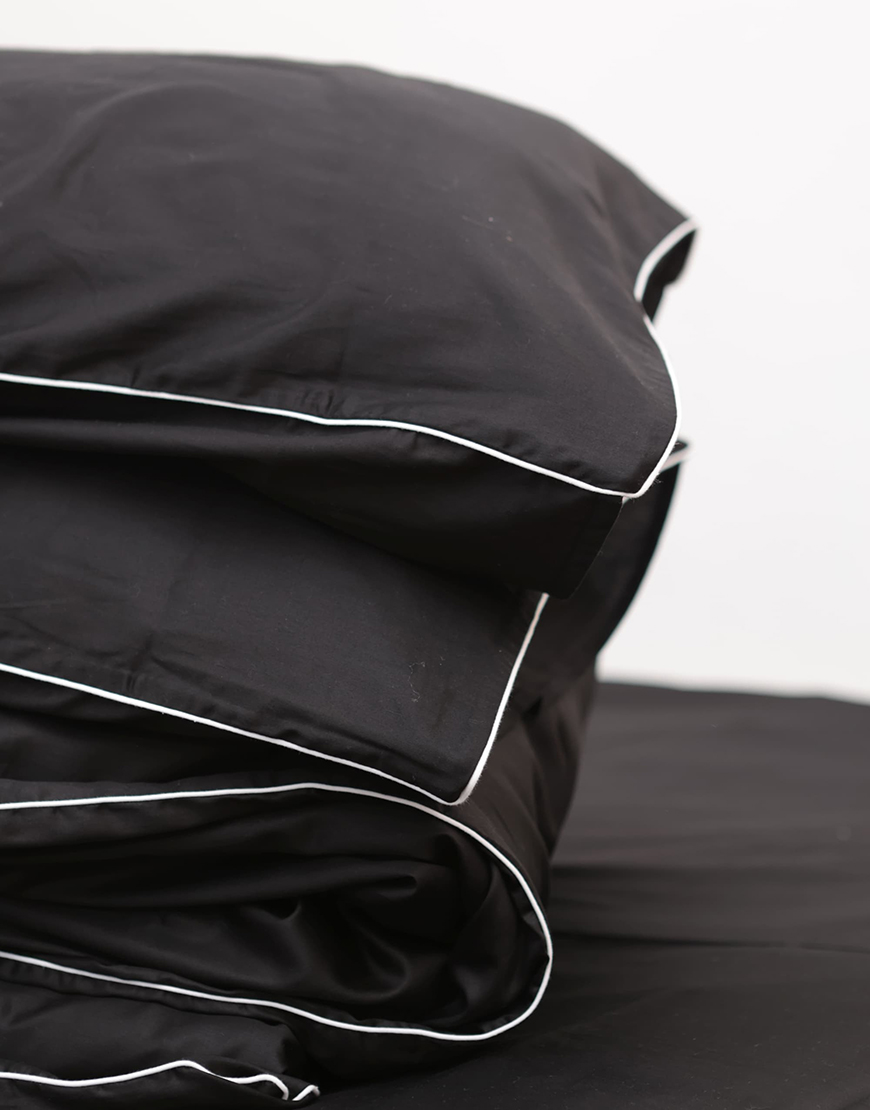 Комплект постільної білизни Чорний сатин з білим кантом