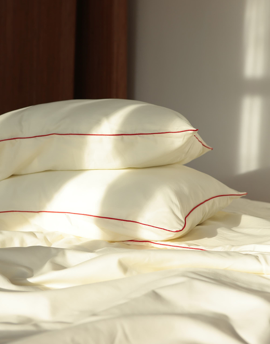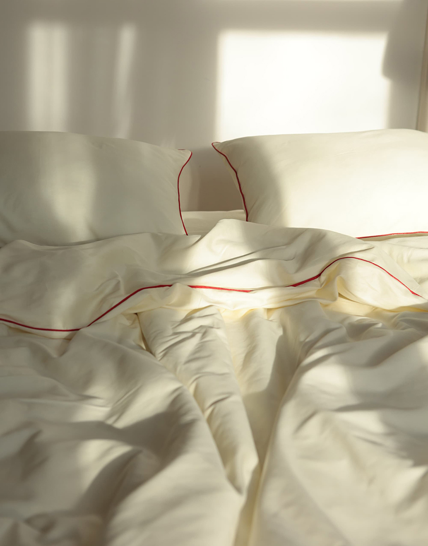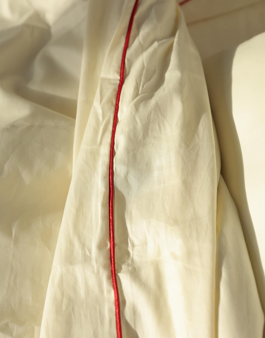 Комплект постільної білизни Молочний сатин з червоним кантом