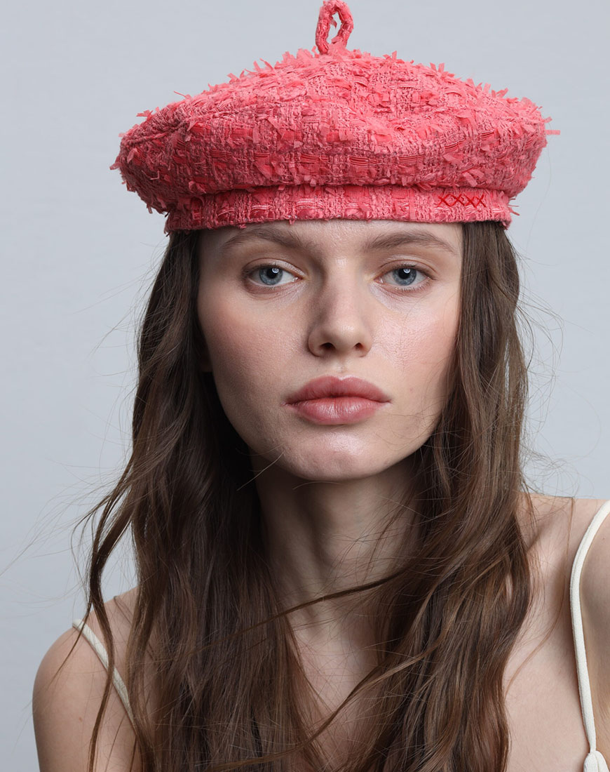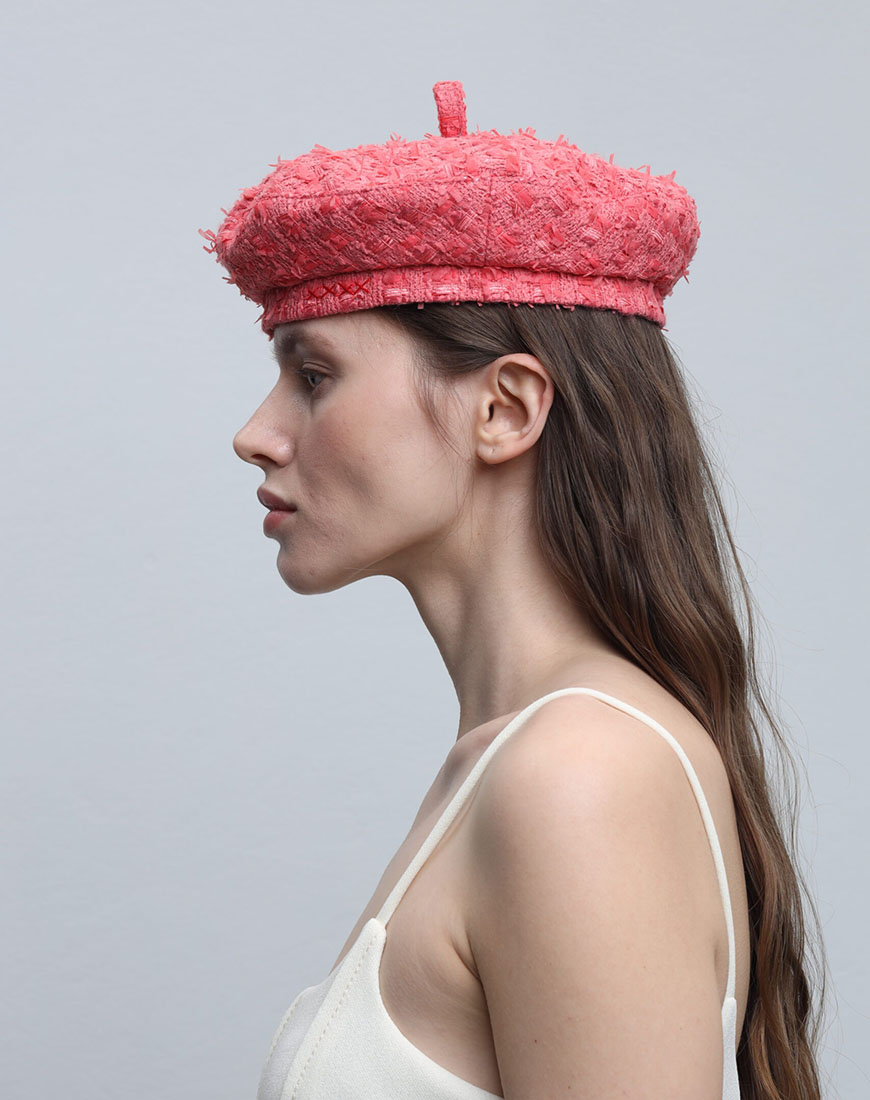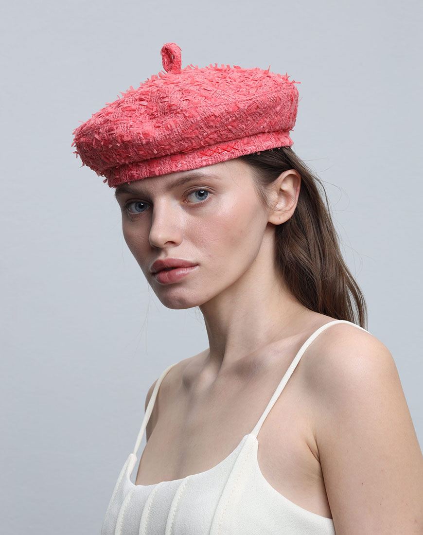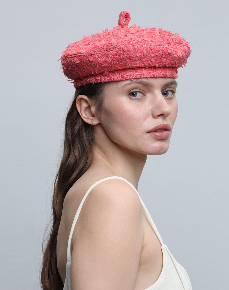 При створенні цього берета ми вирішили використати нетривіальну для головного убору костюмну тканину CHANEL.