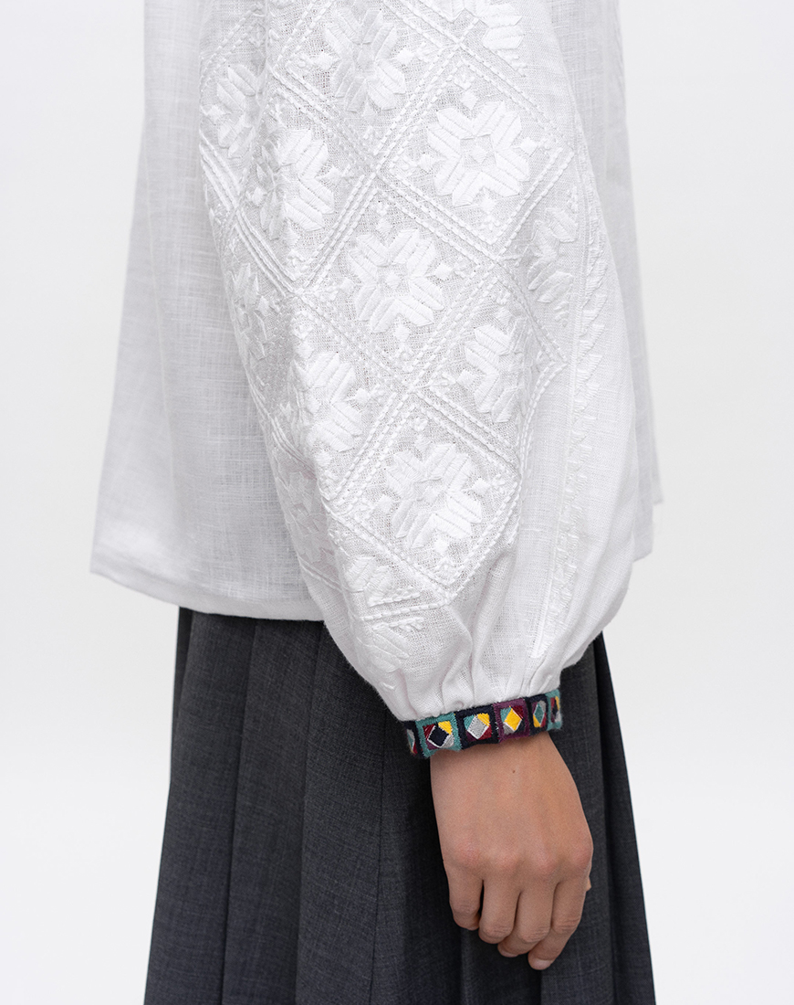 На сорочці зображені геометричні восьмикутні зірки. Зірки розкидані по рукавах і зібрані у геометричний