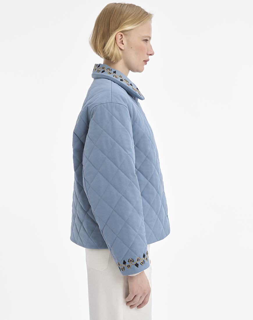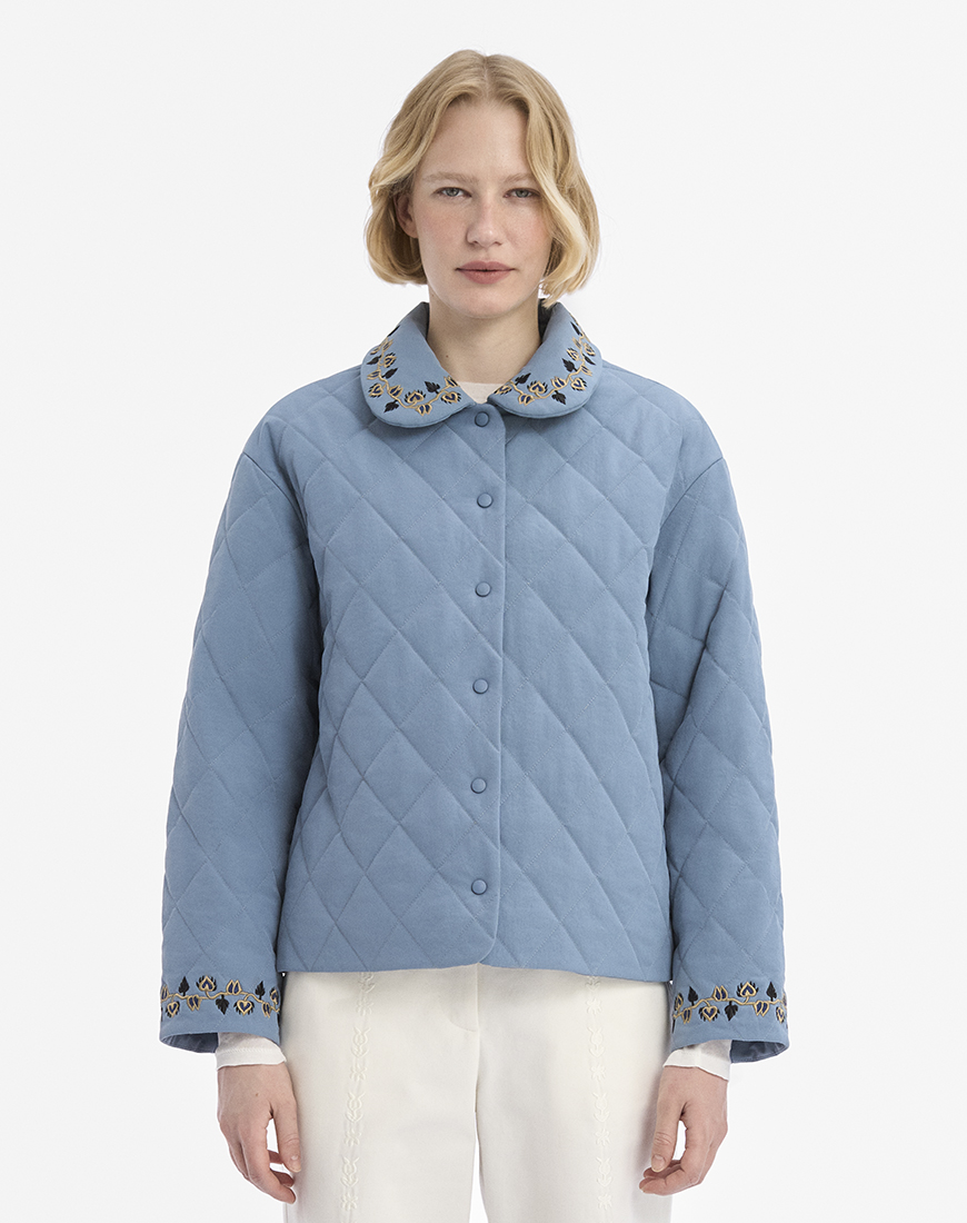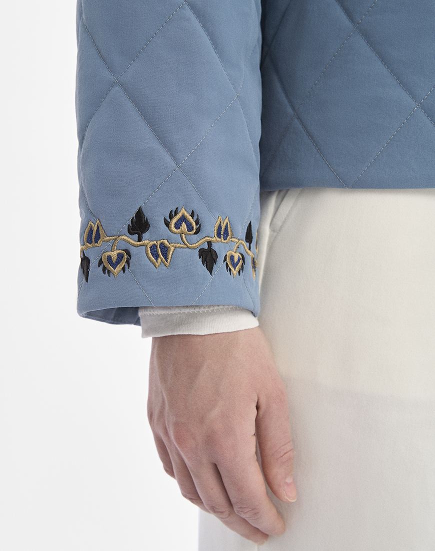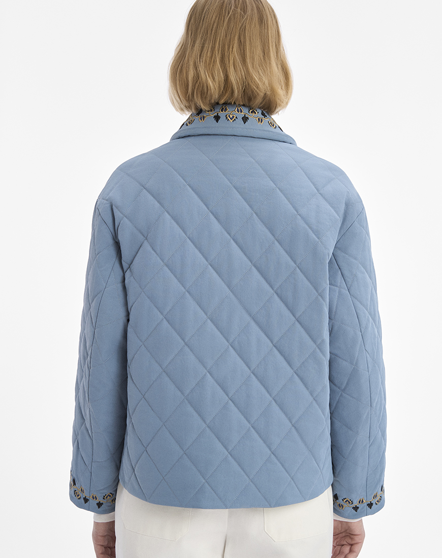 Блакитна стьобана куртка з утеплювачем.