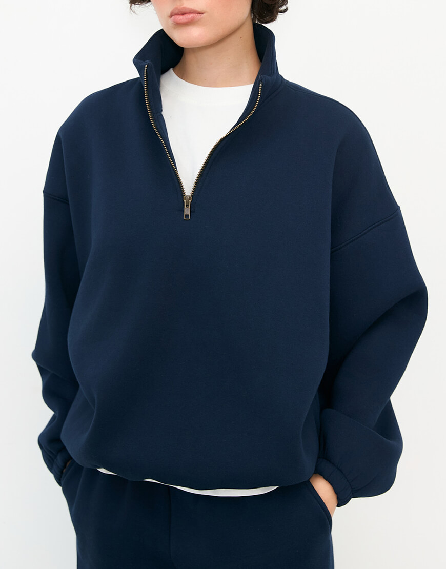Світшот half zip синій з начосом