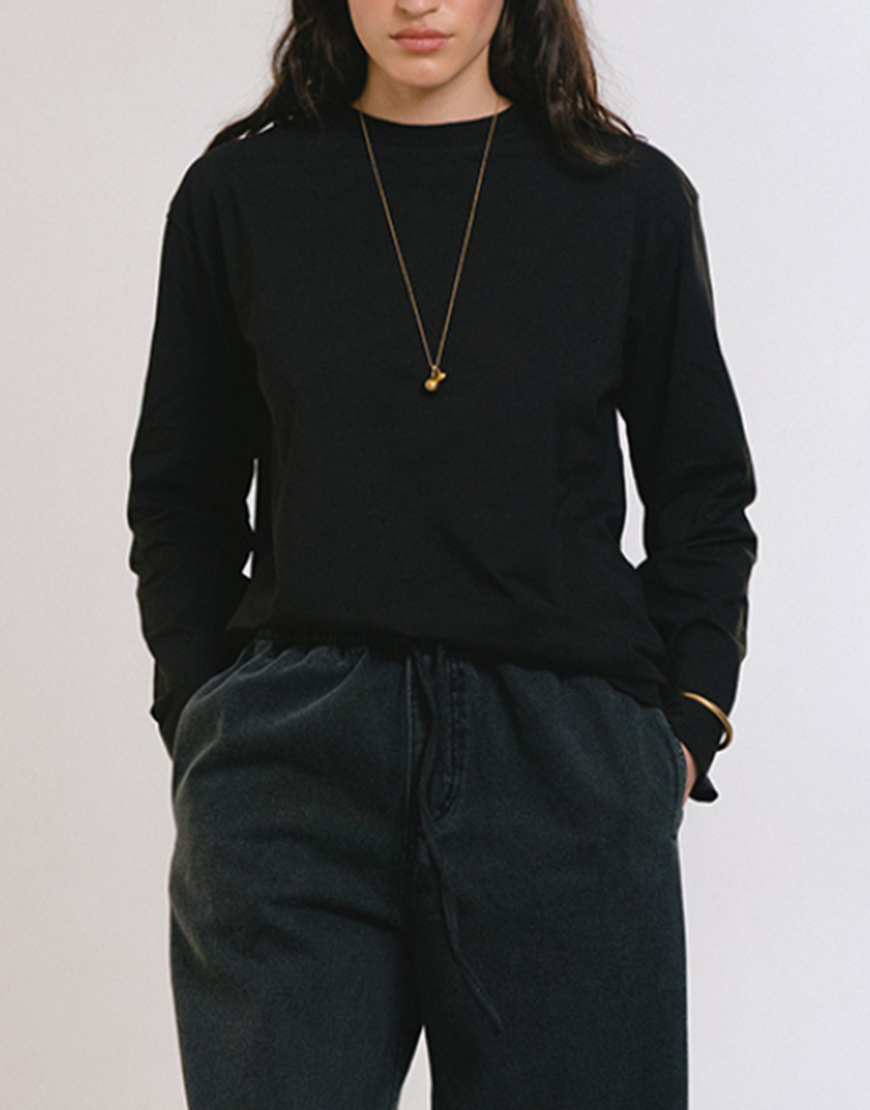 Доставка впродовж 2-5 робочих днівЛонгслів зі щільного трикотажу чорного кольору. Не просвічується, злегка тягнеться. Силует — оверсайз, можна обирати на розмір менше.