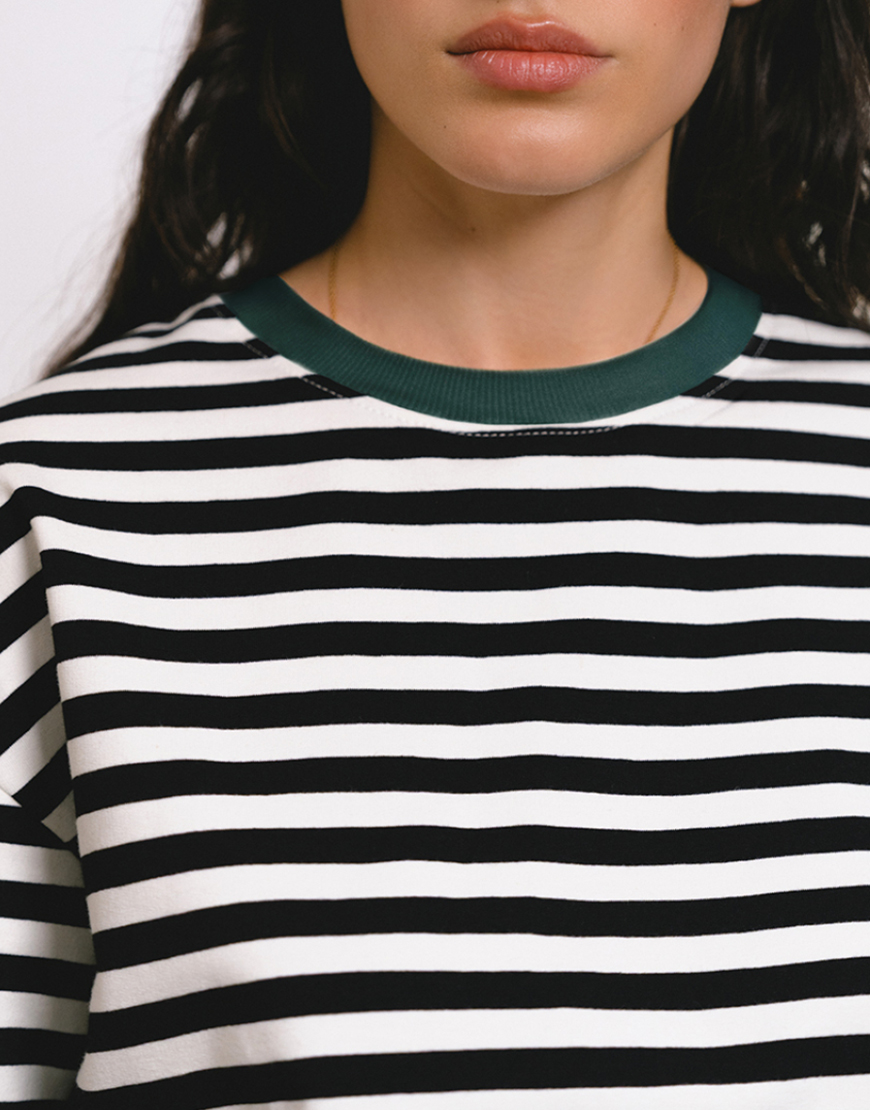 Футболка в чорно-білу смужку зелена горловина