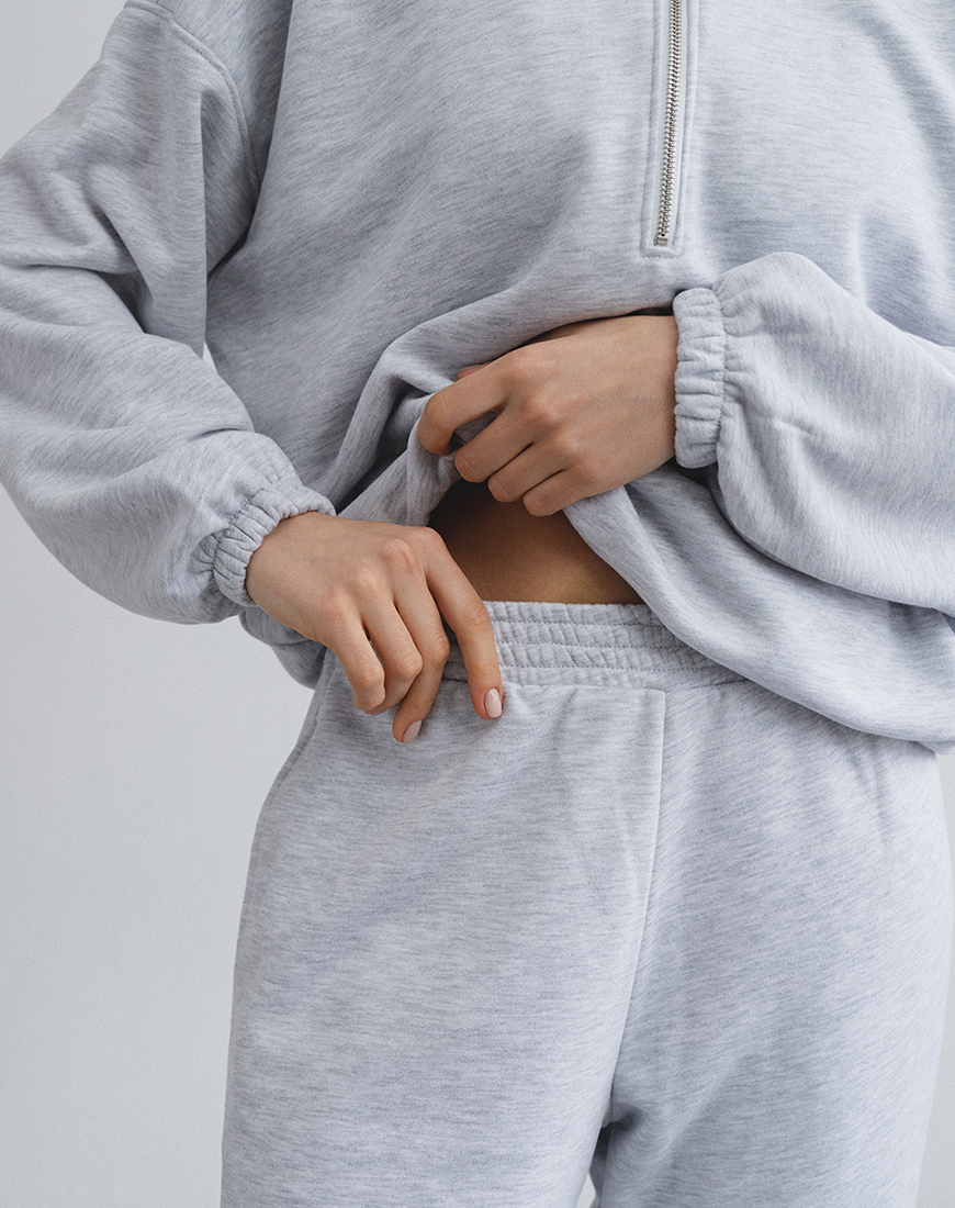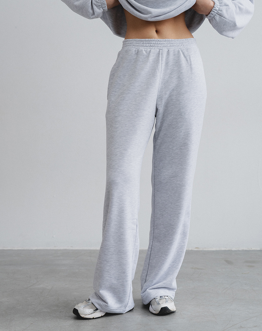 Доставка впродовж 2-5 робочих днівПрямі штани світло-сірого відтінку меланж. Трикотаж середньої щільності, петля зсередини (не утеплені). Обробка soft touch – надзвичайно м’які на дотик. Висока посадка, пояс на резинці. Штани повномірні.