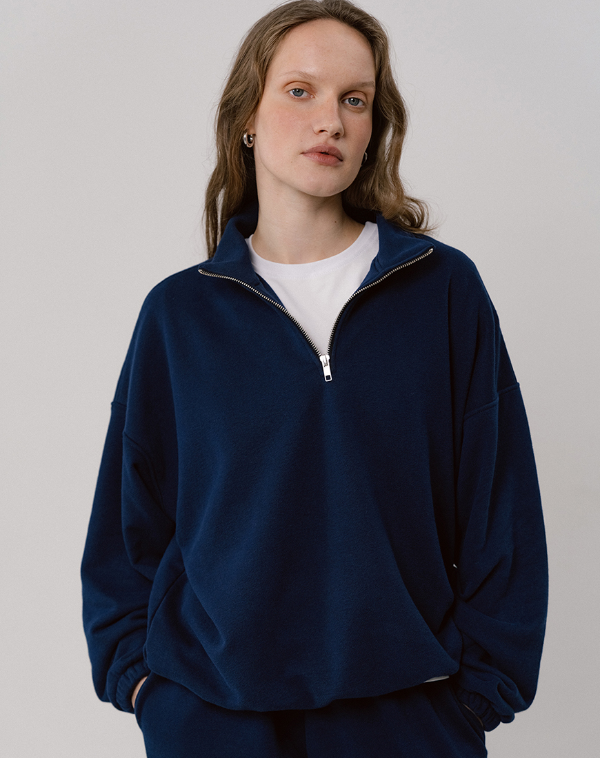 Світшот half zip синій без начосу