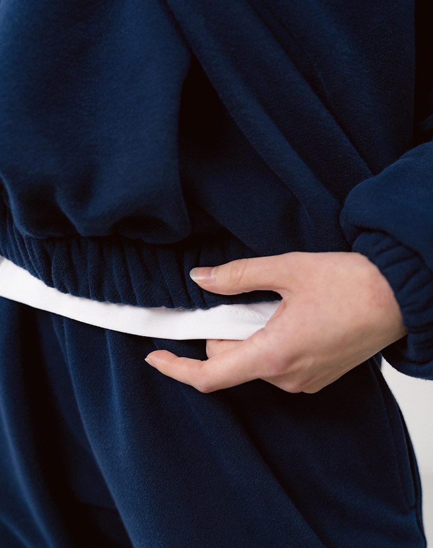 Доставка впродовж 2-5 робочих днівСвітшот темно-синього кольору з металевим замком. Трикотаж середньої щільності, зсередини петля (без утеплення). Обробка soft touch – надзвичайно м’який на дотик. Оверсайз крій, широкий рукав. Низ виробу та рукави на резинках.