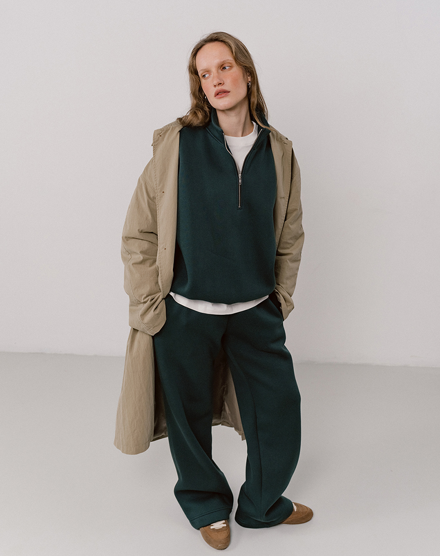 Доставка впродовж 2-5 робочих днівШтани прямі з утепленого трикотажу (з начосом всередині) у темно-зеленому кольорі. Посадка висока, на резинці. Штани повномірні.