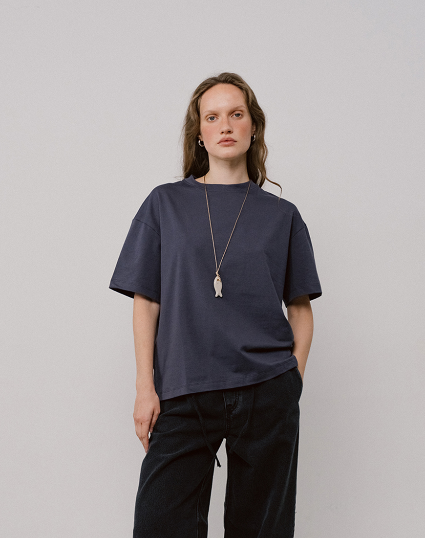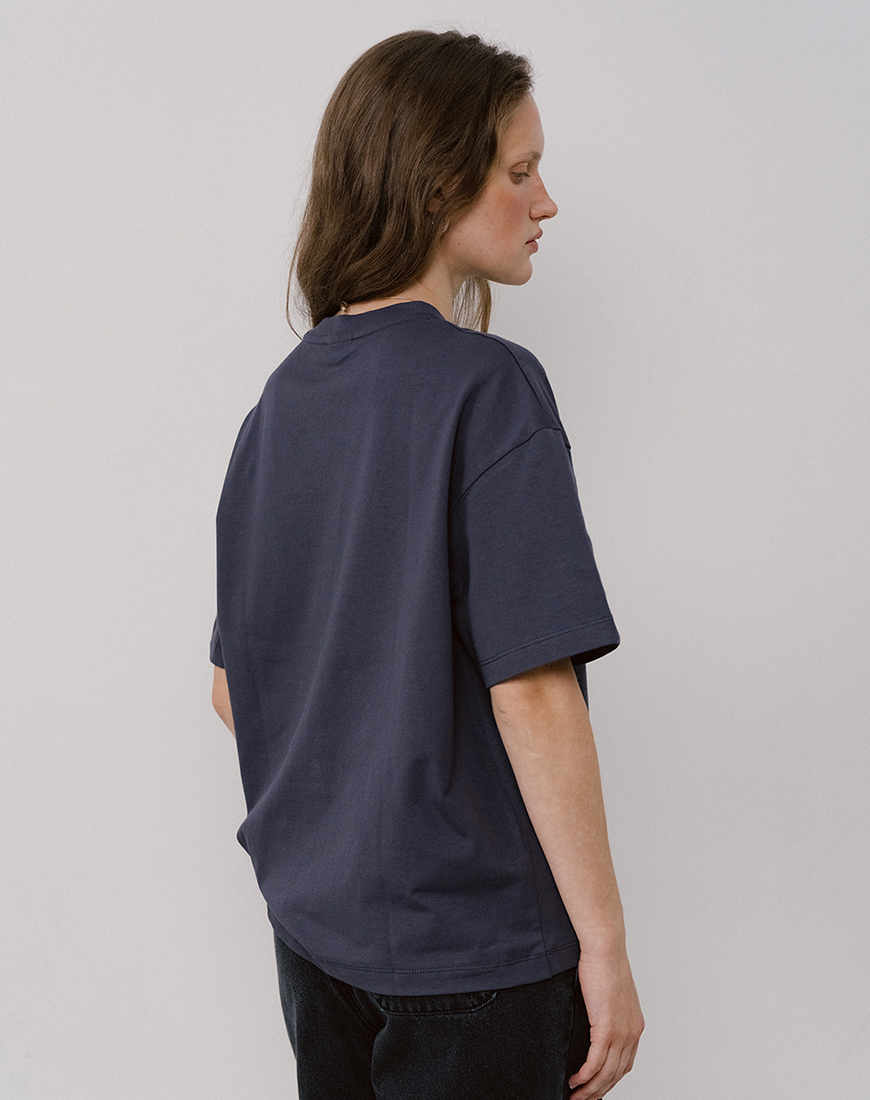 Доставка впродовж 2-5 робочих днівФутболка темно-сірого відтінку, cилует оверсайз. Виконана із щільної, проте м’якої, бавовни (230-240 г/м2), що добре тримає форму та не просвічує. Трикотаж найвищої якості, довговічний та невибагливий у догляді.