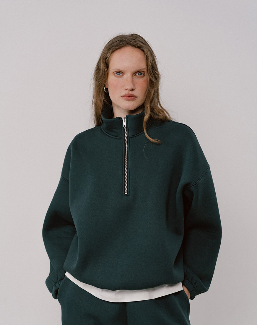 Світшот half zip темно-зелений з начосом