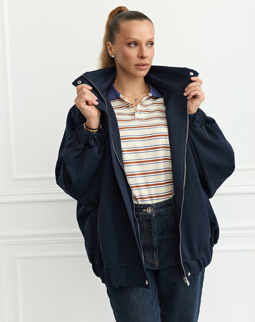 Куртка-бомбер синього кольору – це класичний універсальний елемент гардероба (casual).