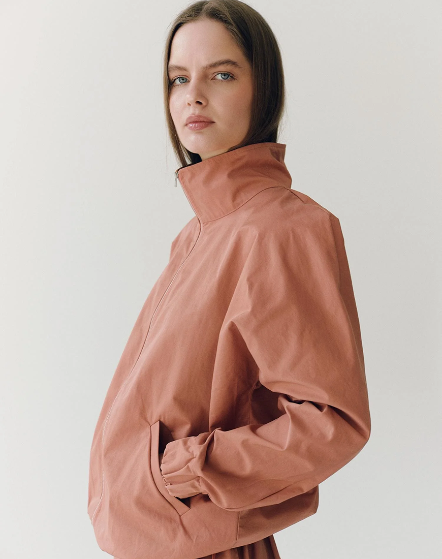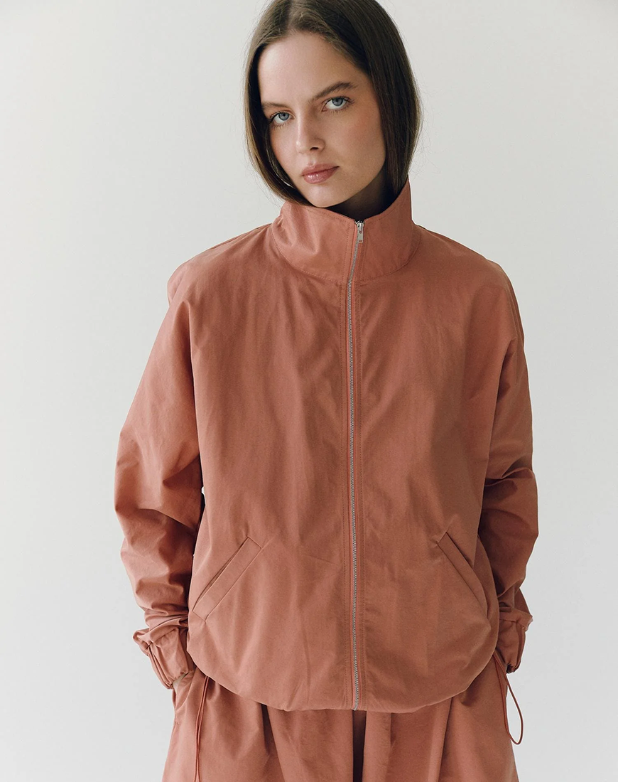 Доставка впродовж 3-5 робочих днівОверсайз бомбер з цупкої тканини з боковими кишенями та високим коміром. Без підкладки застібується на блискавку YKK.